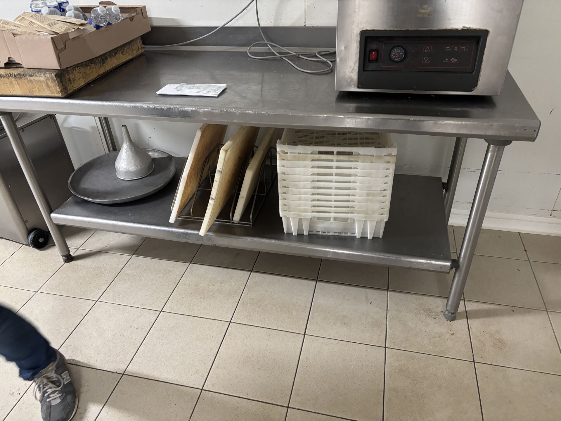 Table inox à dosseret à 1 plateau intermédiaire. 190x70 cm