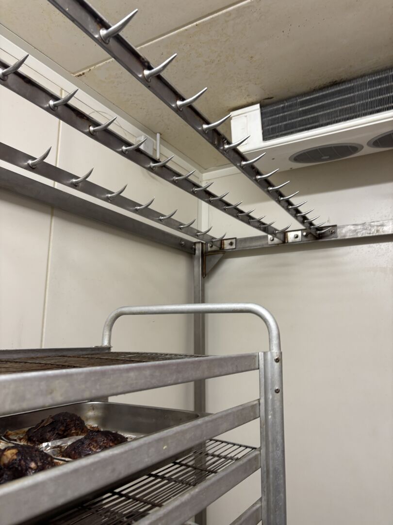 Rack à dents de loup en inox 220x189x210 cm On joint : 3 barres de loup à 22, 21 et 15 dents A DEMONTER PROPREMENT SANS DOMMAGE A L'IMMEUBLE