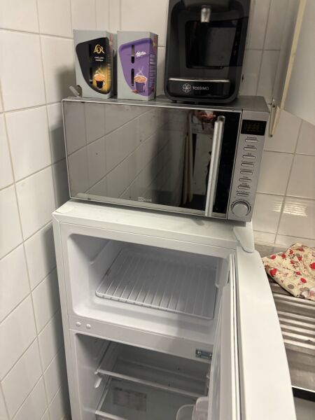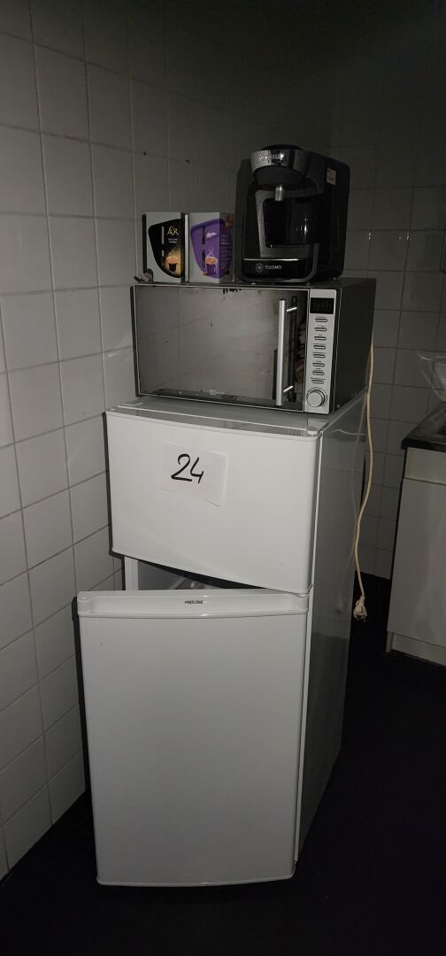 Réfrigérateur combiné PROLINE Machine à café à dosette BOSCH TASSIMO Four à micro-ondes KERWAVE