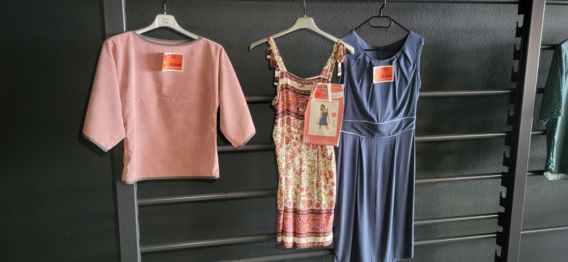 1 lot de 25 vêtements dont: pantalons, robes pull etc… de différentes tailles et coloris