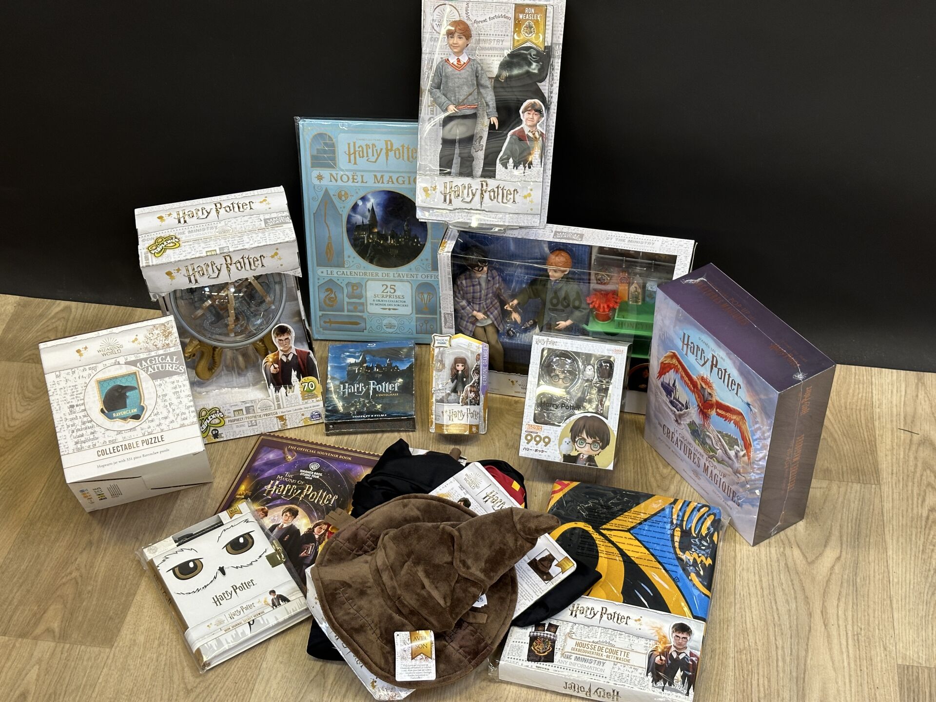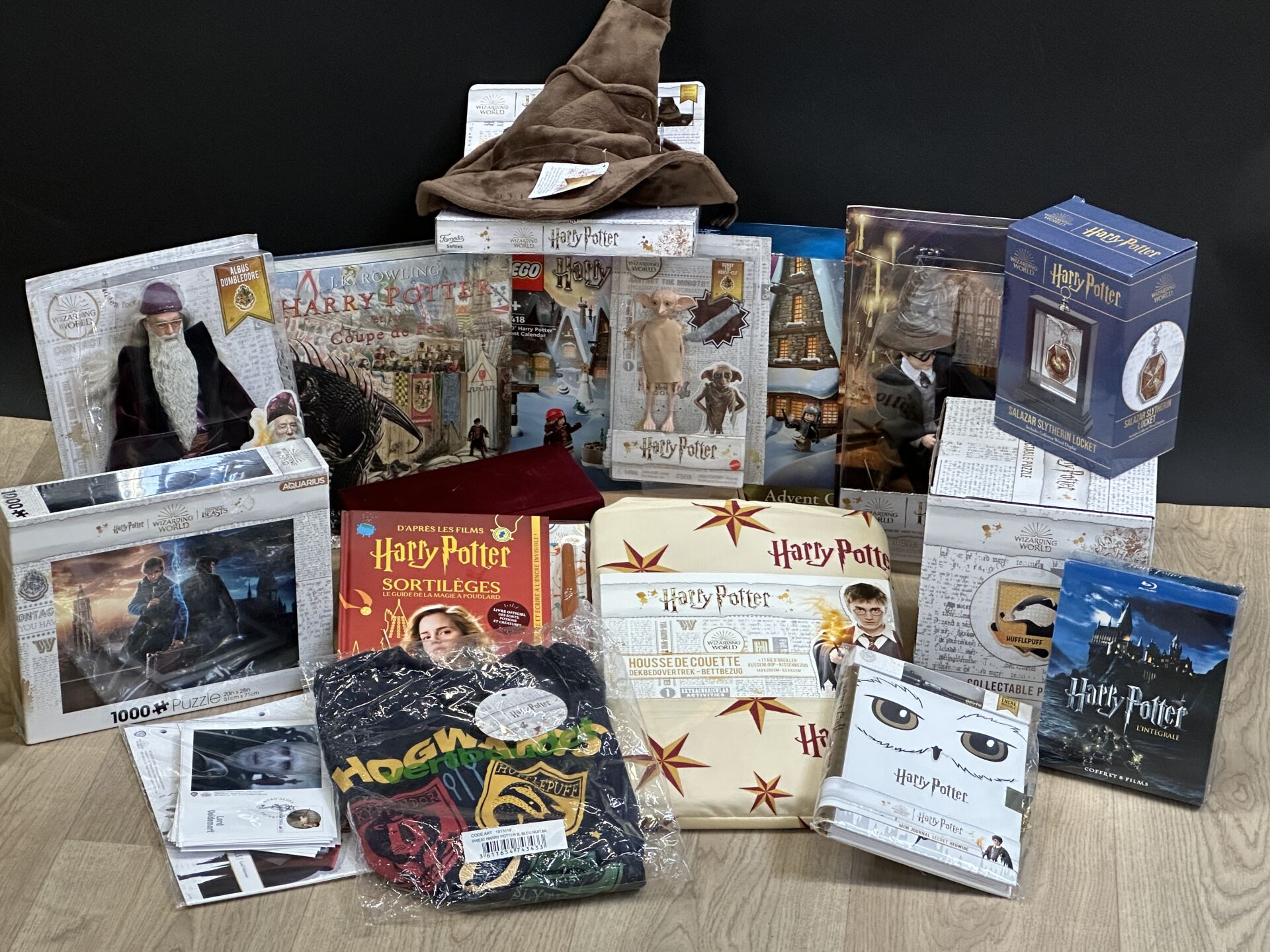 HARRY POTTER – Réunion de puzzle, déguisement, figurines, dvd, housse de couette,...