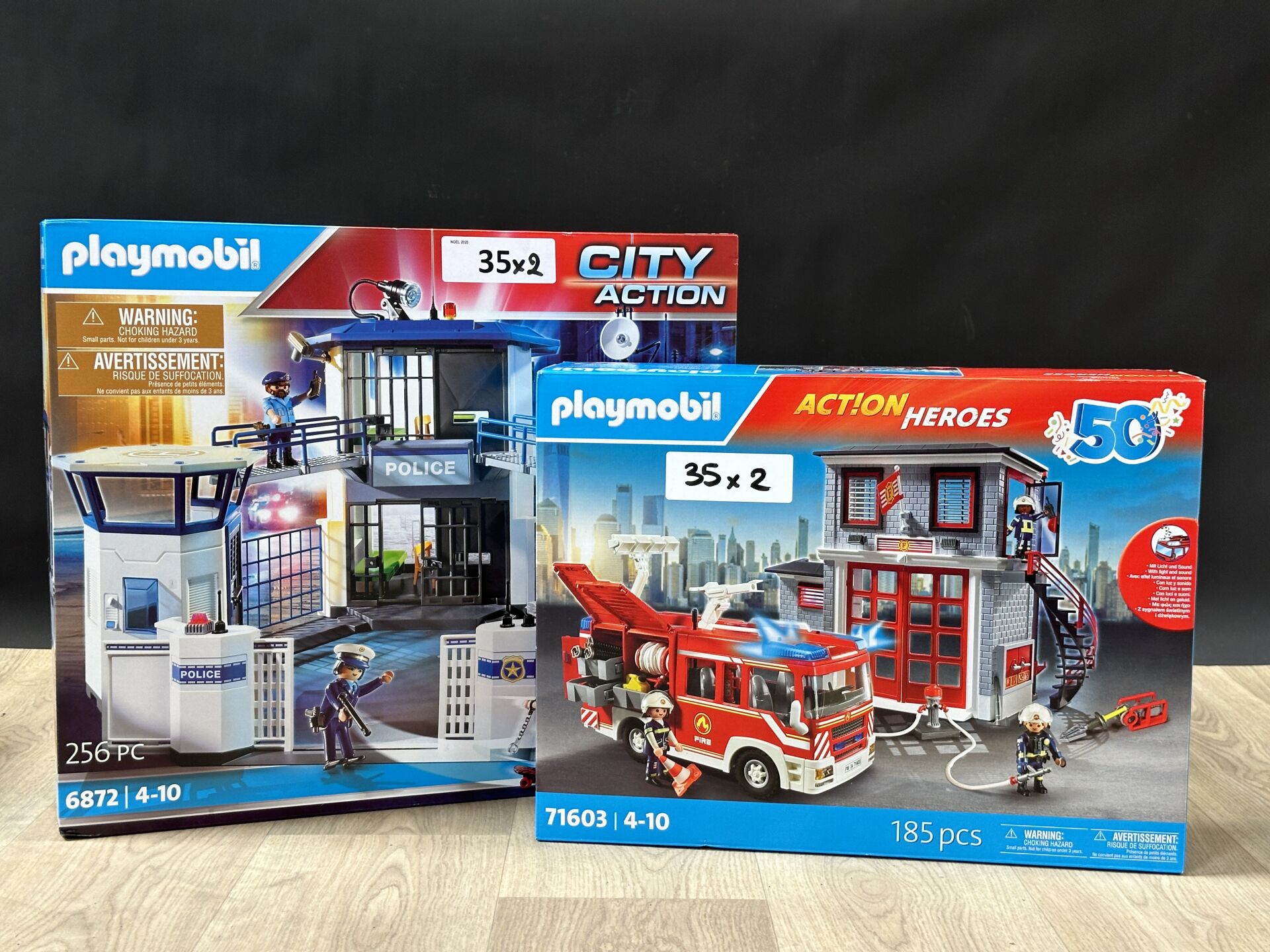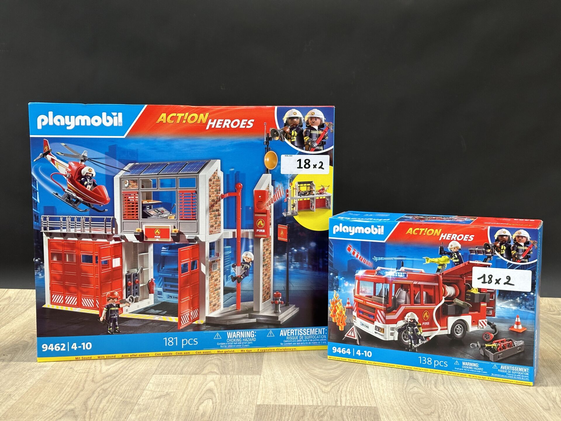 PLAYMOBIL Action Heroes : deux boîtes caserne et fourgon de pompier numéro 9462 et 9464. A...