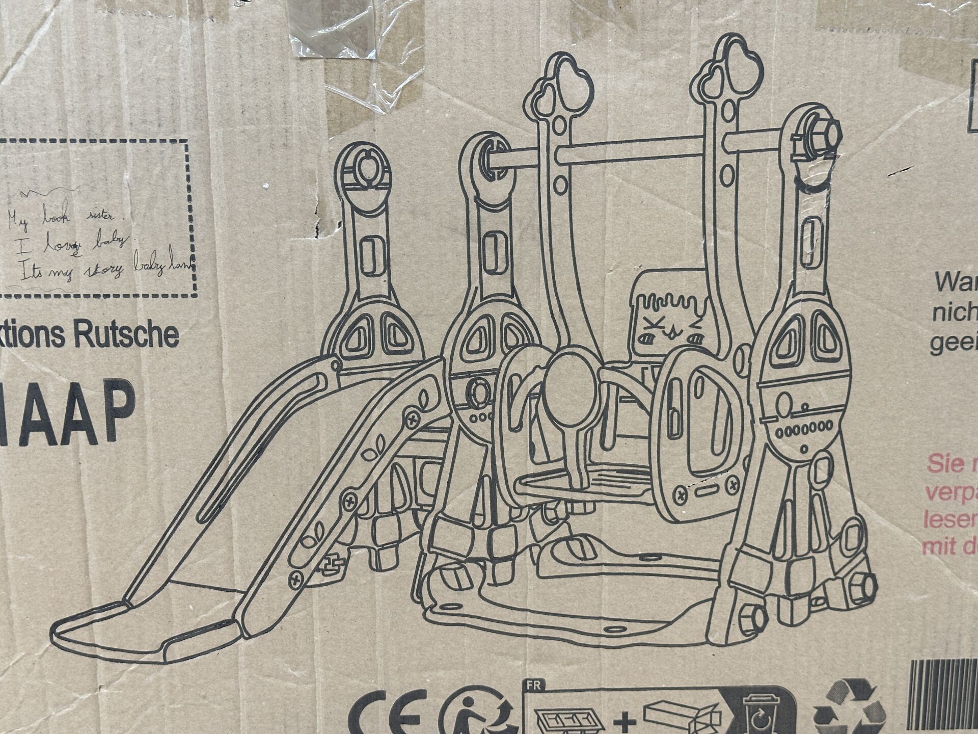 Structure de jeux pour enfant avec toboggan, balançoire et panier de basket, en PVC couleur rose...