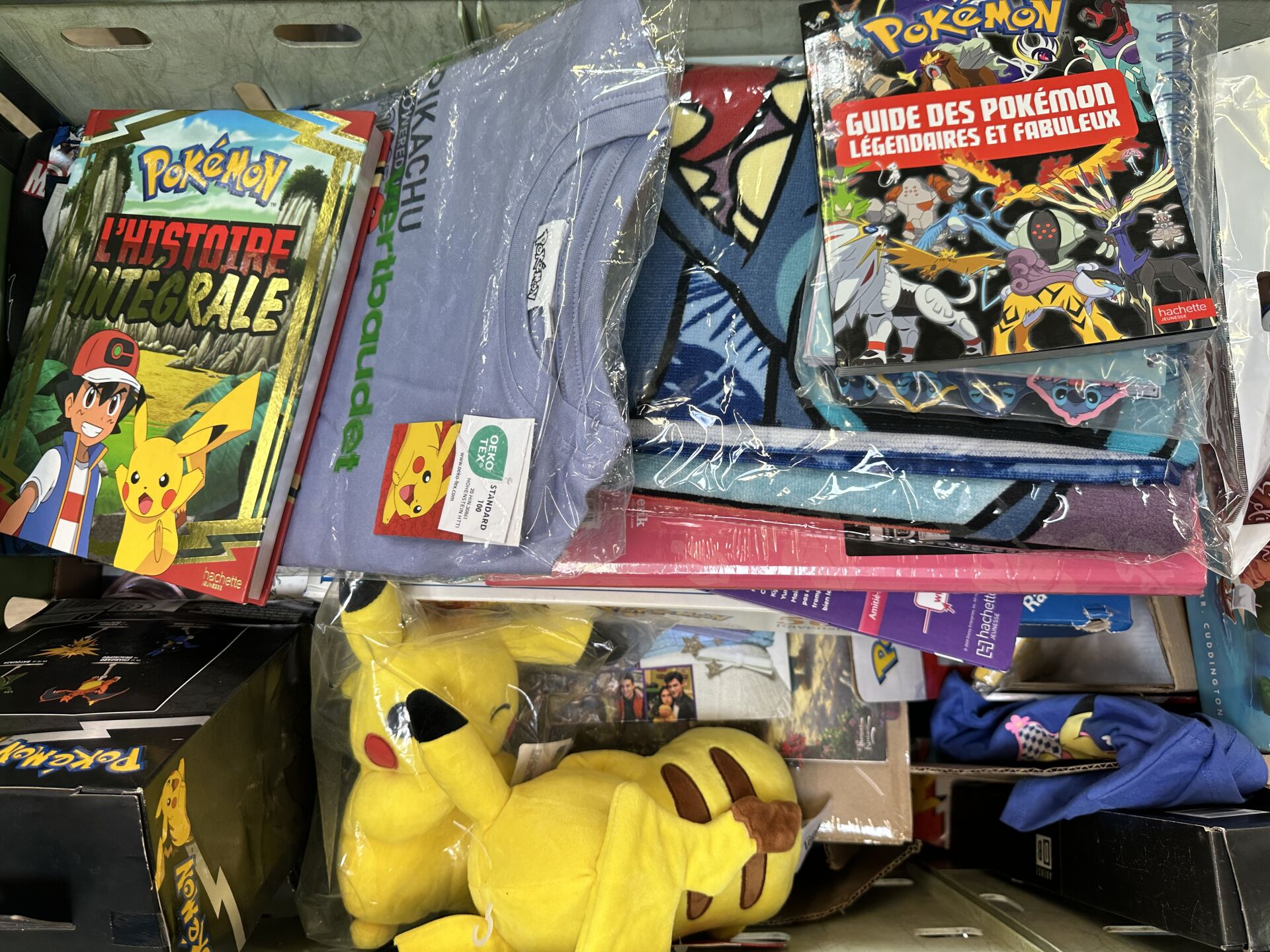 Réunion de petits jeux, peluches, livres et accessoires notamment sur les thèmes Pokemon,...