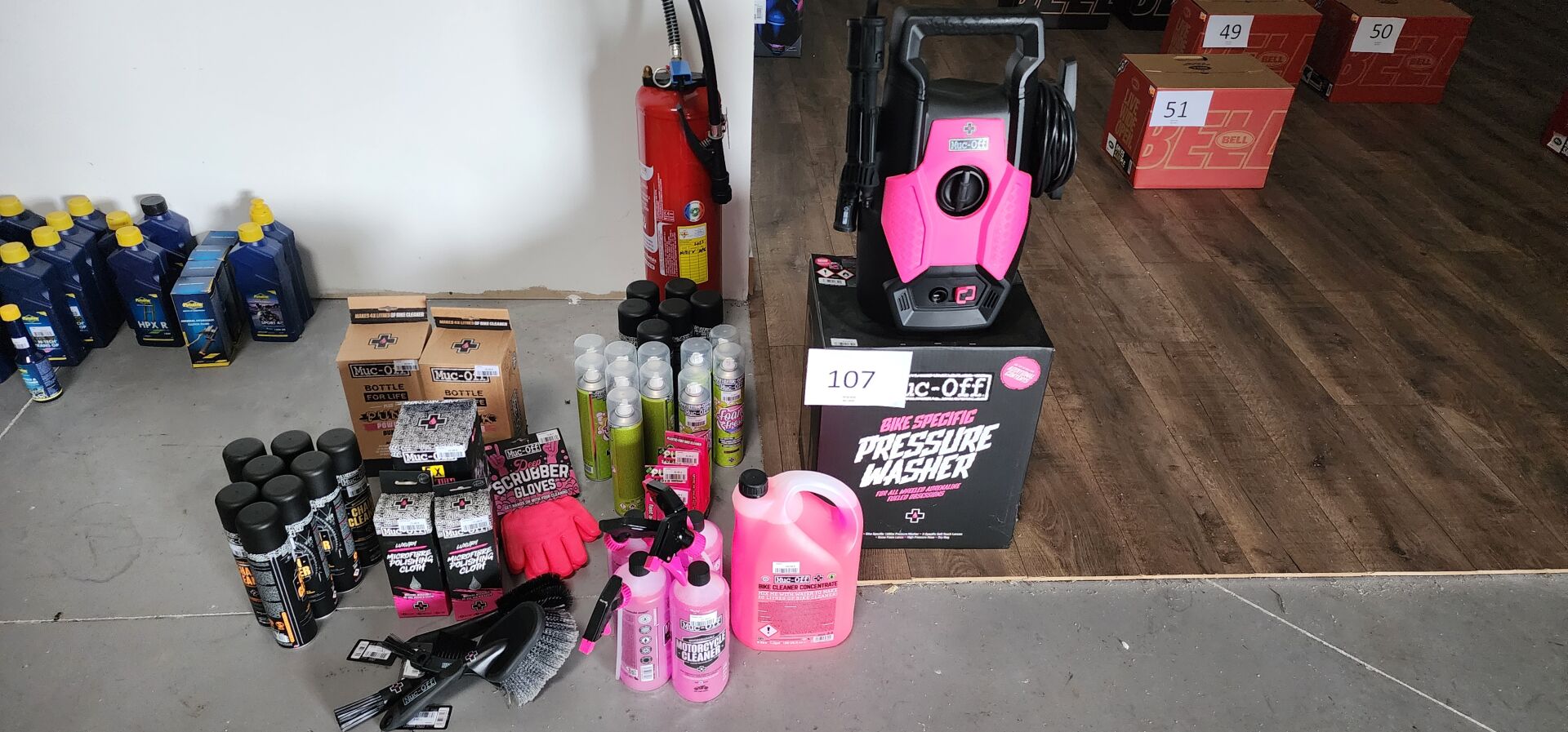 1 nettoyeur haute pression MUC-OFF dans son carton et 1 lot de produits de nettoyage pour 2 roues...