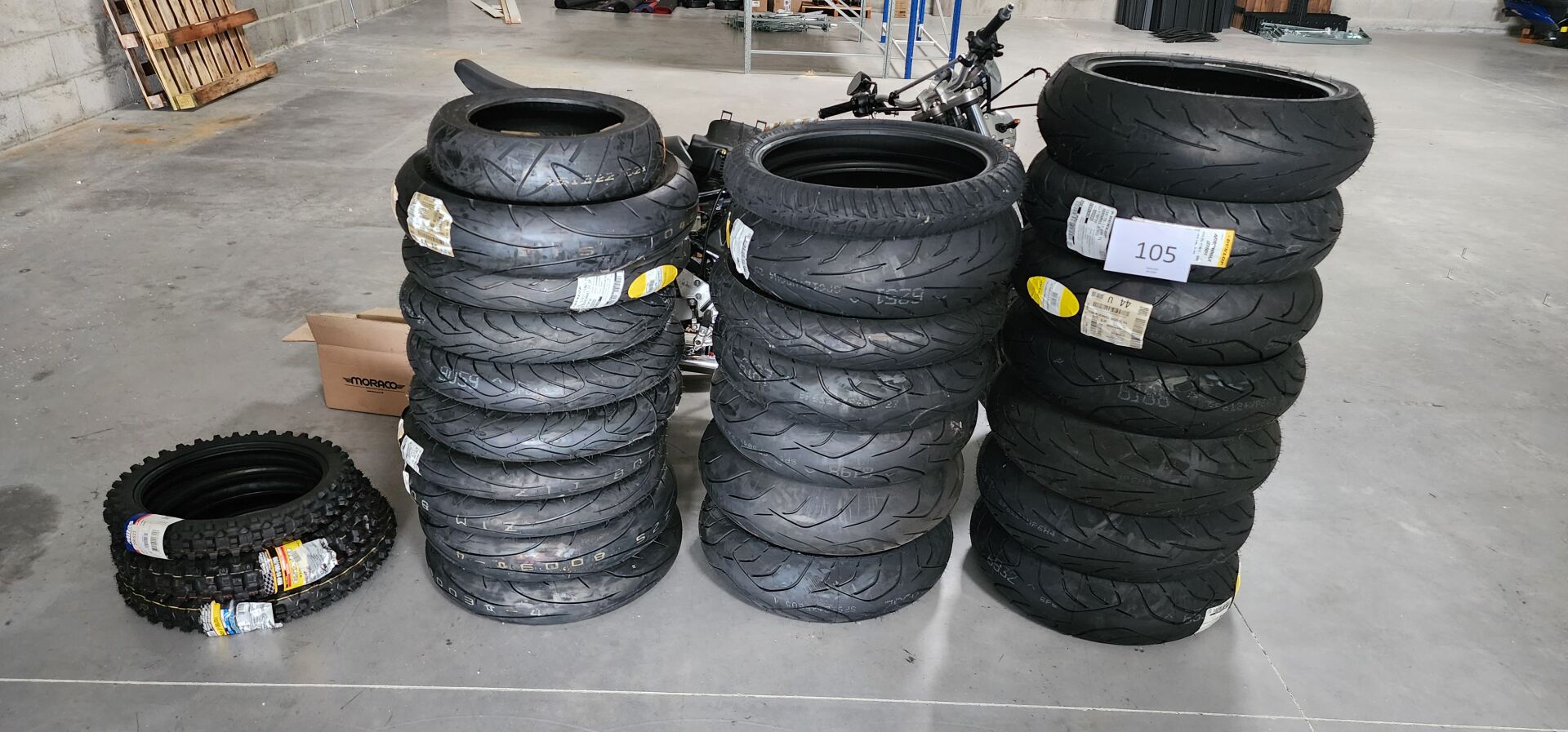 1 lot de pneus comprenant: 23 pneus de moto, 3 pneus de motocross et 1 pneu de scooter, le tout...