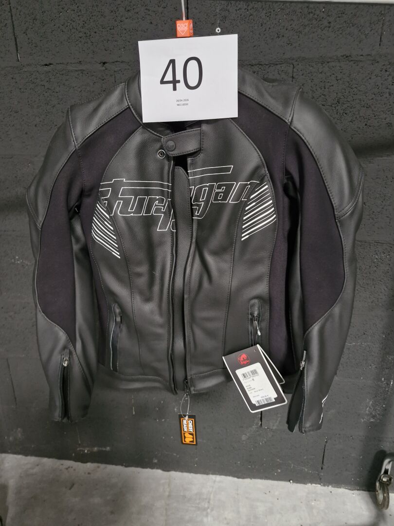 1 blouson de moto en cuir FURYGAN Alba 6028 en Noir-Blanc, taille S (état neuf)
