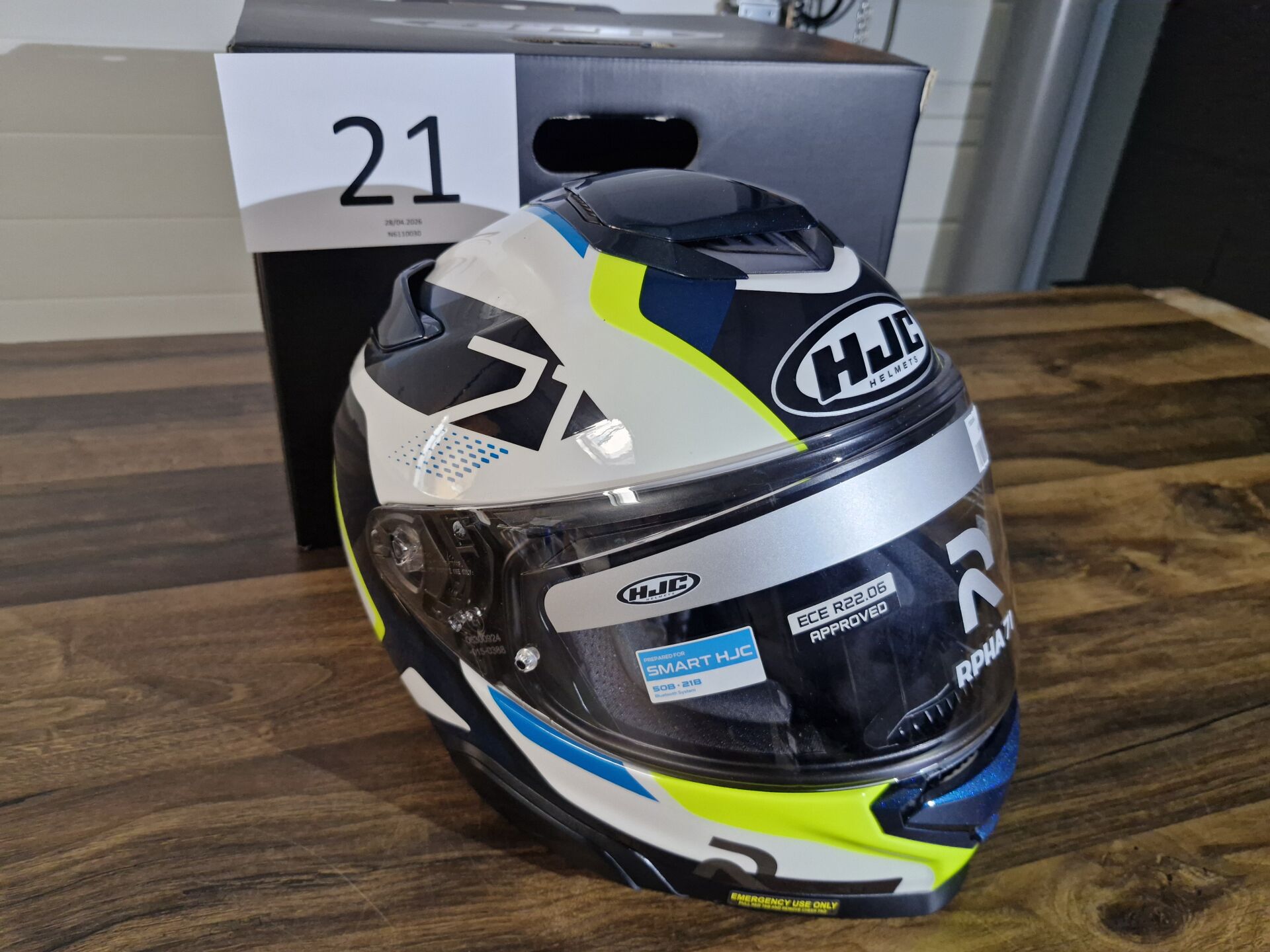 1 casque de moto HJC modèle I71, couleur Simo MC21SF taille L, dans sa housse avec son carton...
