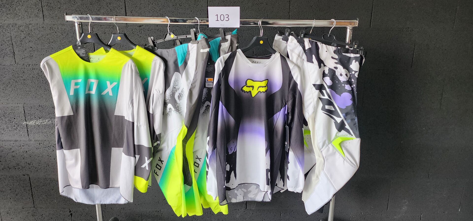 1 lot de vêtements pour motocross comprenant: 10 maillots dont pricipalement FOX et environ 11...