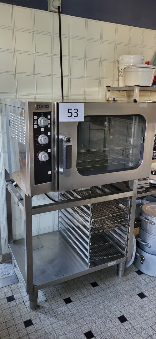 1 four mixte ZANUSSI modèle FCF/E 6-0 n° 42700020, de 2004 86 X 82 X 53 cm , sur desserte inox...