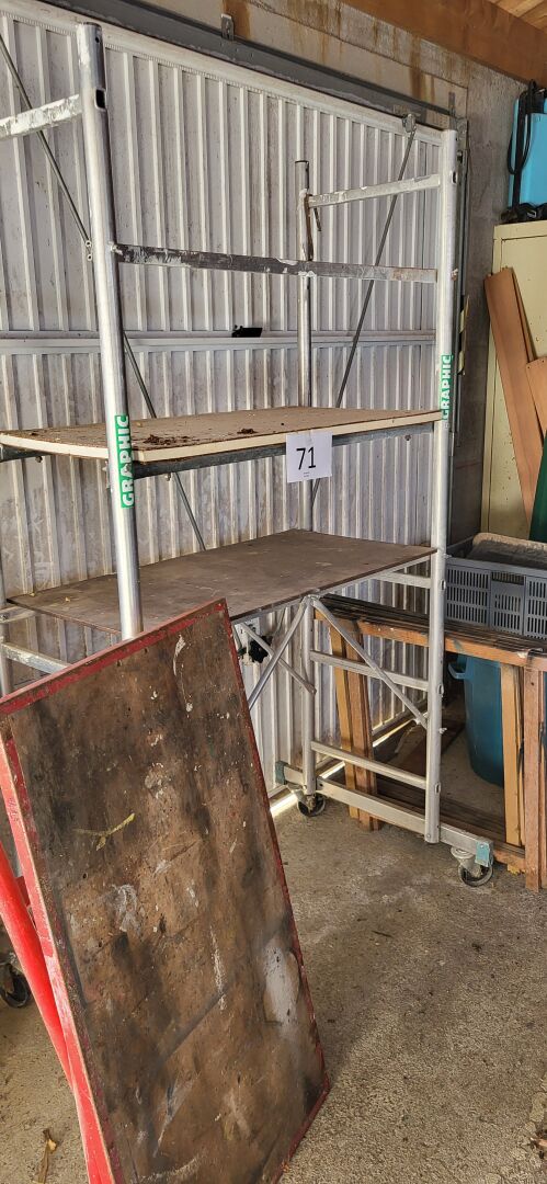 1 échafaudage mobile GRAPHIC 107 X 50 X 202 cm + 1 établi de chantier pliant métal rouge 108 x...