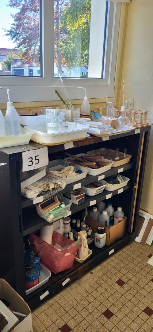 1 armoire basse métal noir à rideau 120 x 45 x 104 cm avec contenu d’articles de...