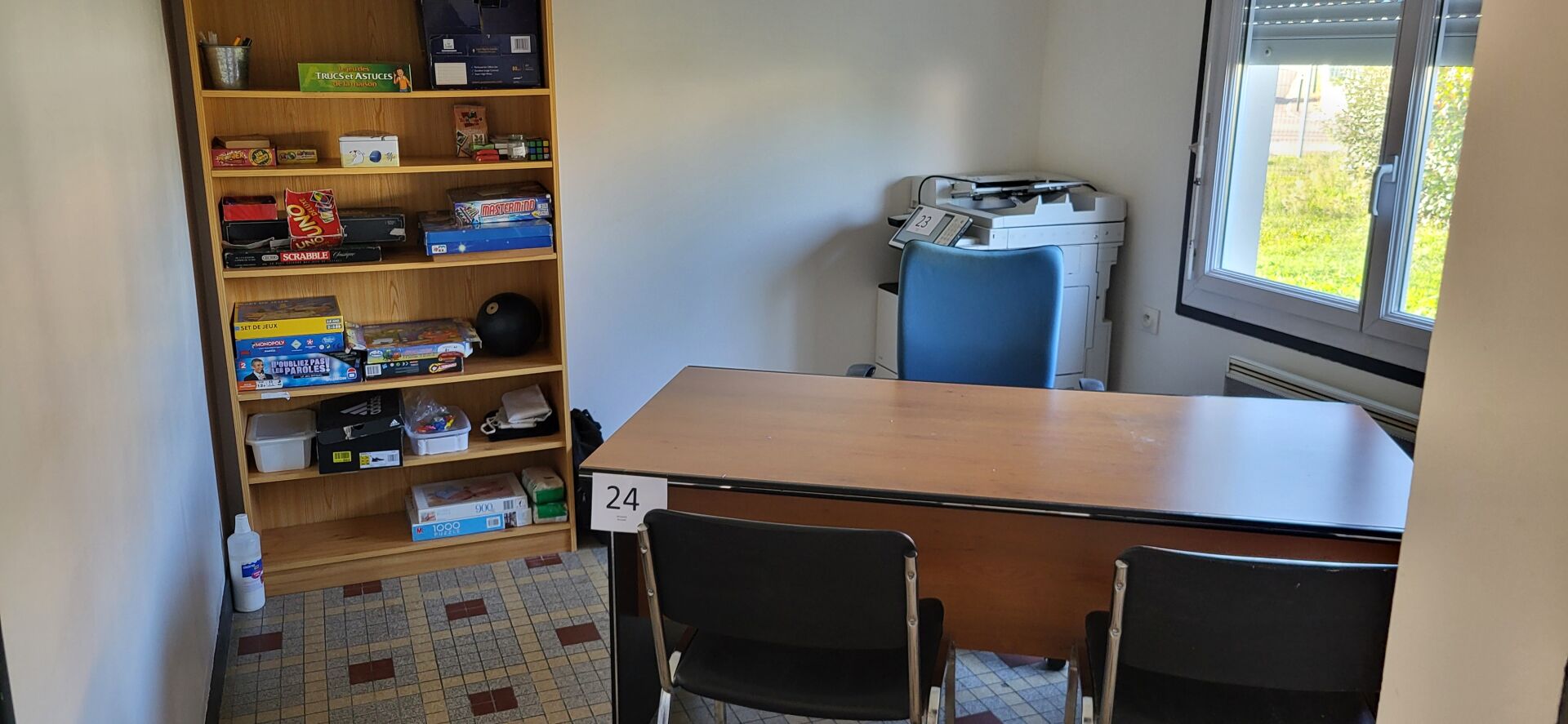 2 étagères 7 niveaux bois, 91 x 30 x 193 cm avec contenu de jeux de société (SCRABBLE, UNO,...