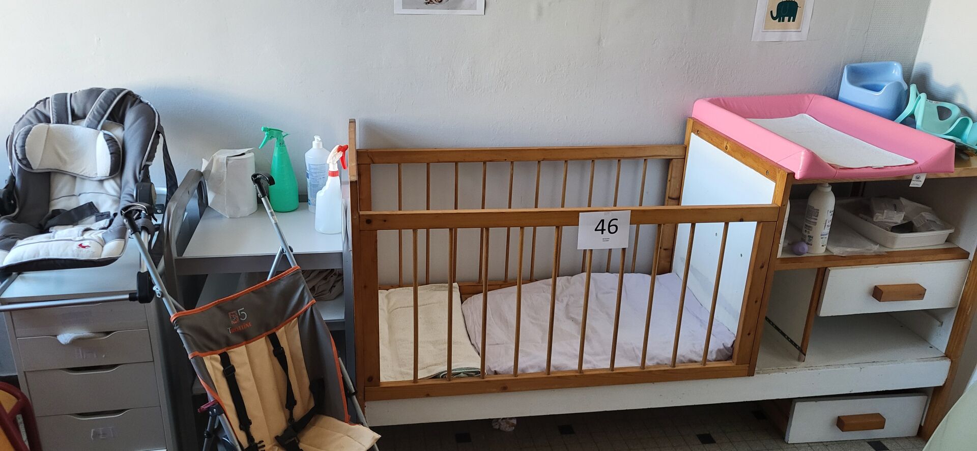 1 lit bébé en bois avec table à langer et rangement 195 x 66 x 100 cm, 1 desserte mobile...
