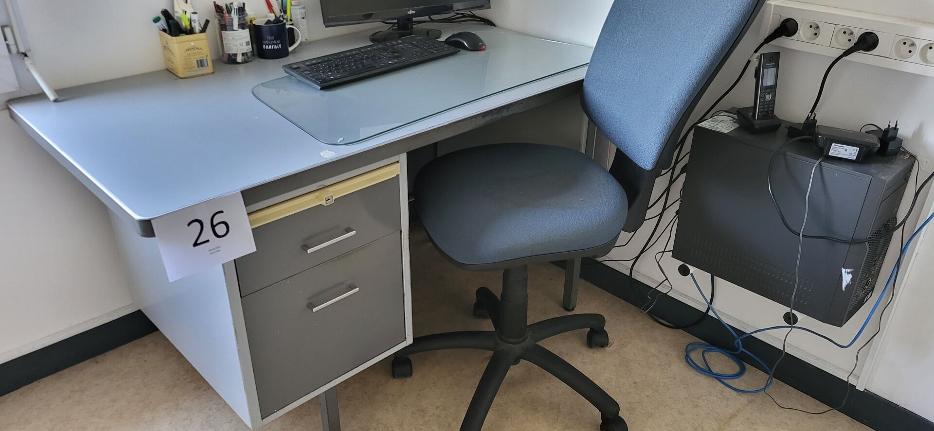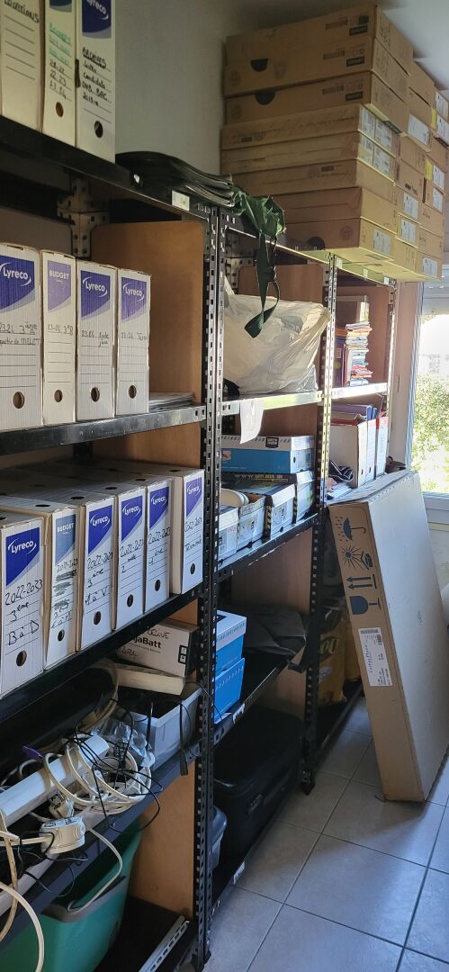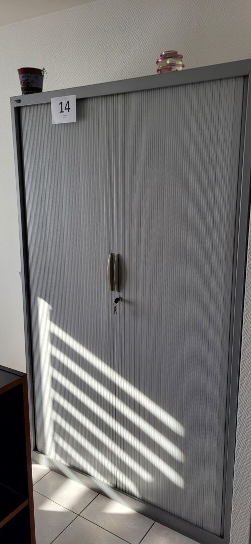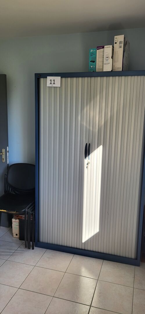 1 armoire basse métal noir à rideau 120 x 45 x 104 cm avec contenu d’articles de...