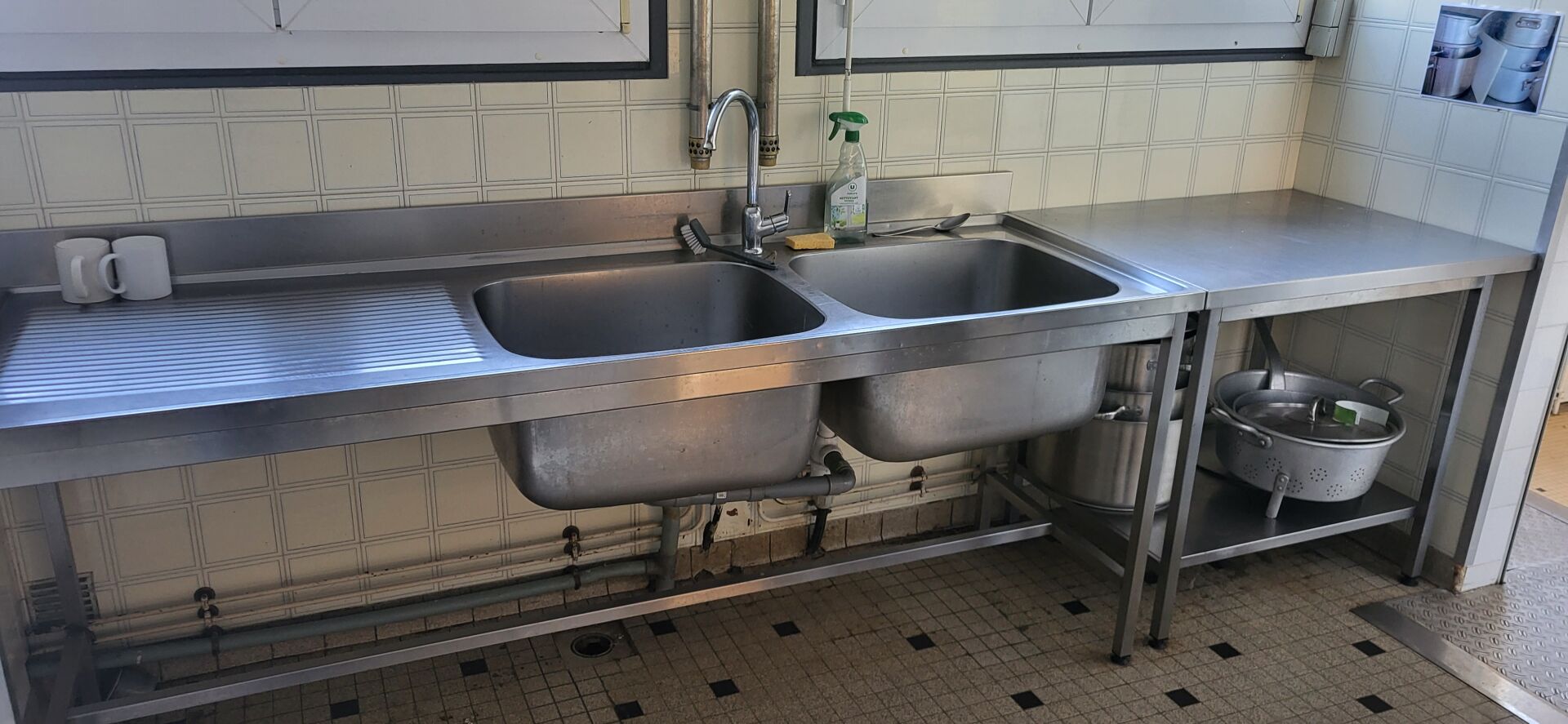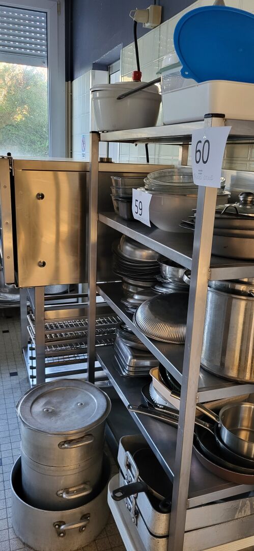 1 lot d’ustensiles de cuisine dont faitouts, passoires, casseroles, poêles, plats inox,...