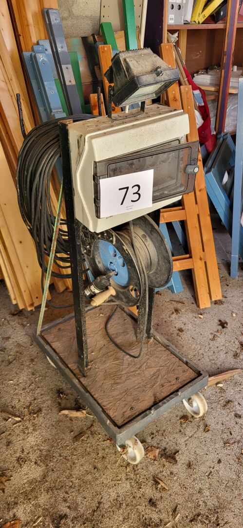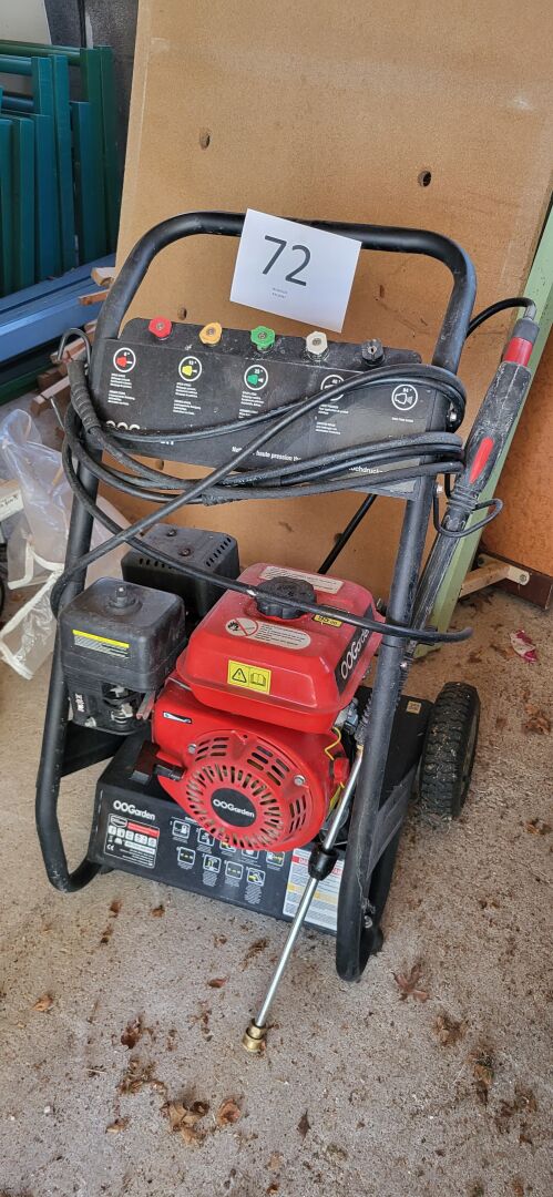 1 lot d’outillage de jardinage (pelles, fourches, balai à feuille, etc), 1 brouette