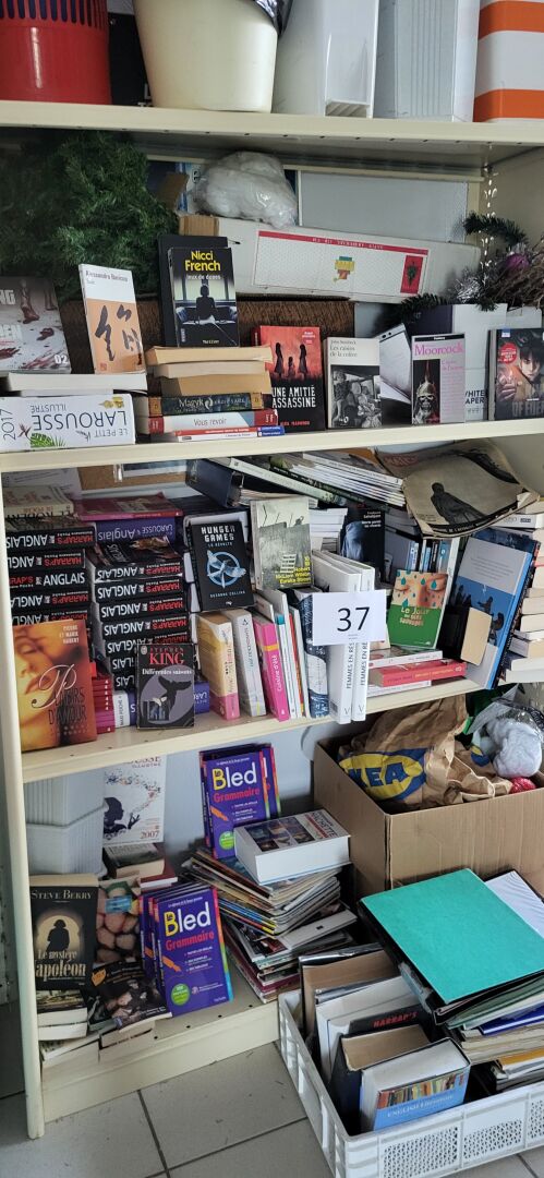 2 étagères 7 niveaux bois, 91 x 30 x 193 cm avec contenu de jeux de société (SCRABBLE, UNO,...