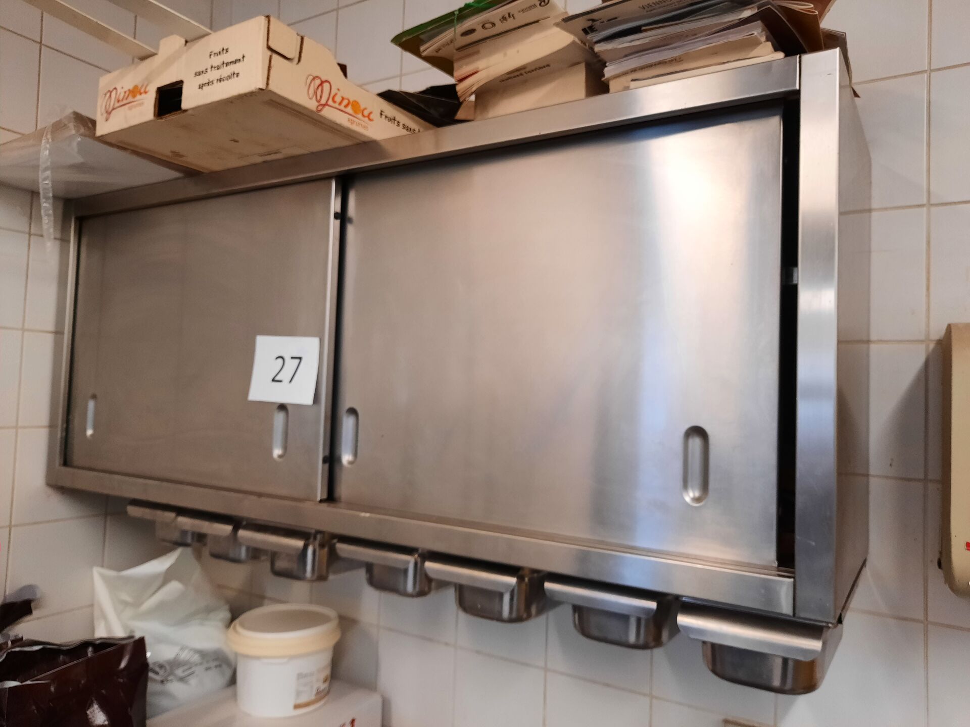 Armoire inox en applique à 2 vantaux coulissants. 150 x 40 x 60cm
