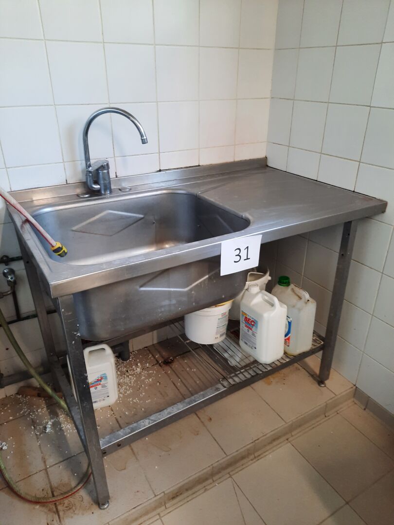 Plonge inox à dosseret, 1 bac, égouttoir à droite