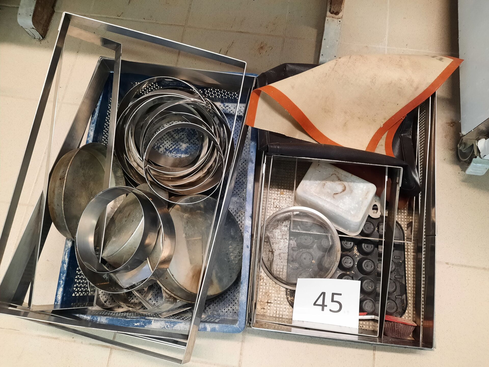 Lot de cercles, cadres à entremets, moules, tapis de cuisson silicone