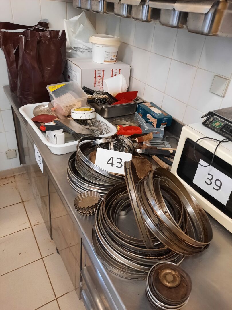 Lot de cercles, fouets, écumoires, couteaux, accessoires