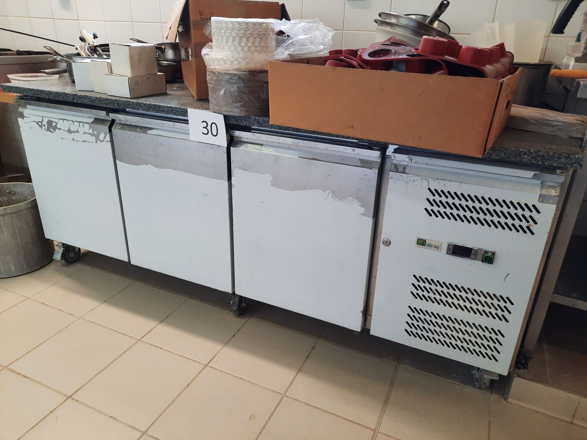 Tour à pâtisserie AFI, froid positif, groupe intégré, 3 vantaux, dessus marbre