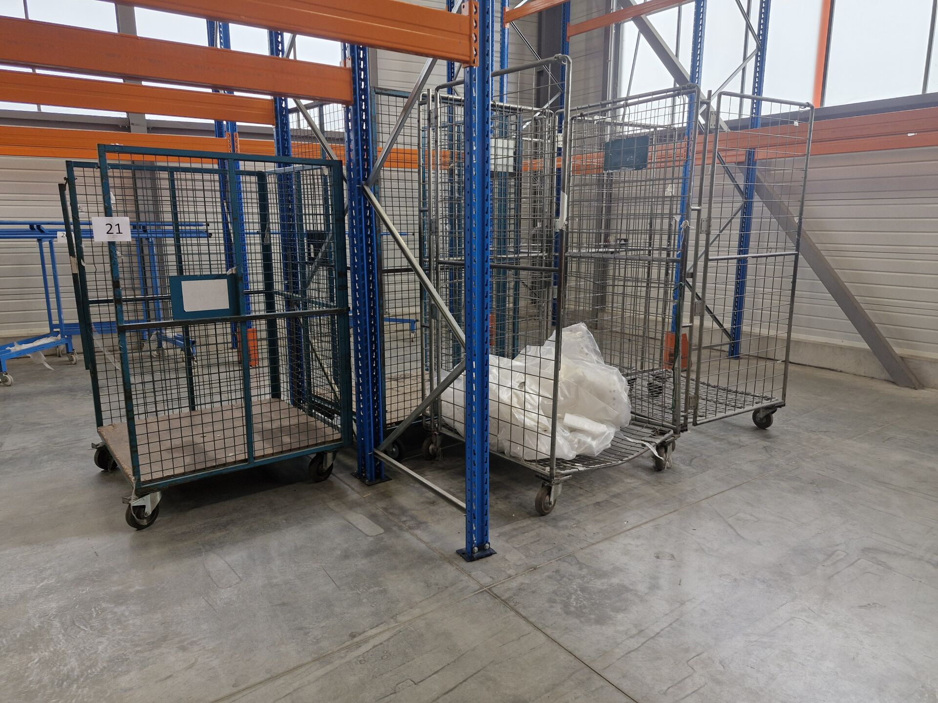 Racks à palettes composés de 20 échelles bleues environ 5 m x 110 cm et 60 lisses 3.9 m