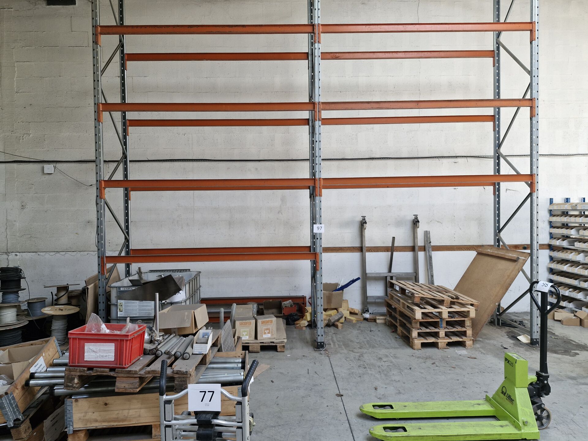 Rack à palette gris/orange composé de 4 échelles (+1) d’environ 5.50m et 26 lisses...