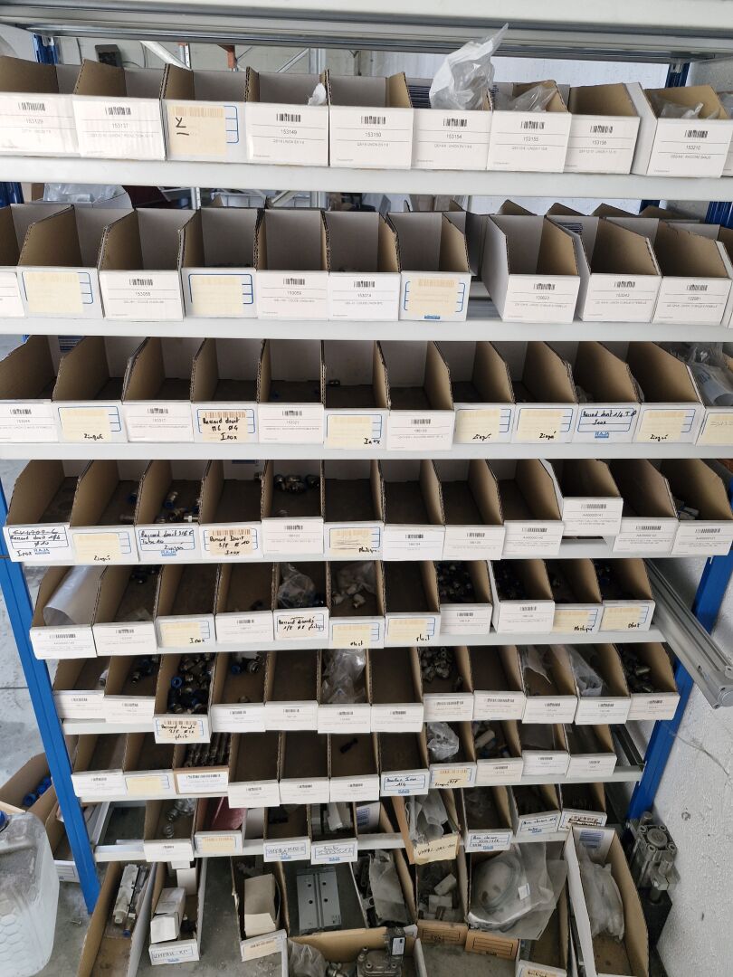 Sur 2 étagères : 1 stock de raccords pour petites durites type FESTO dont manchons, coudes etc...