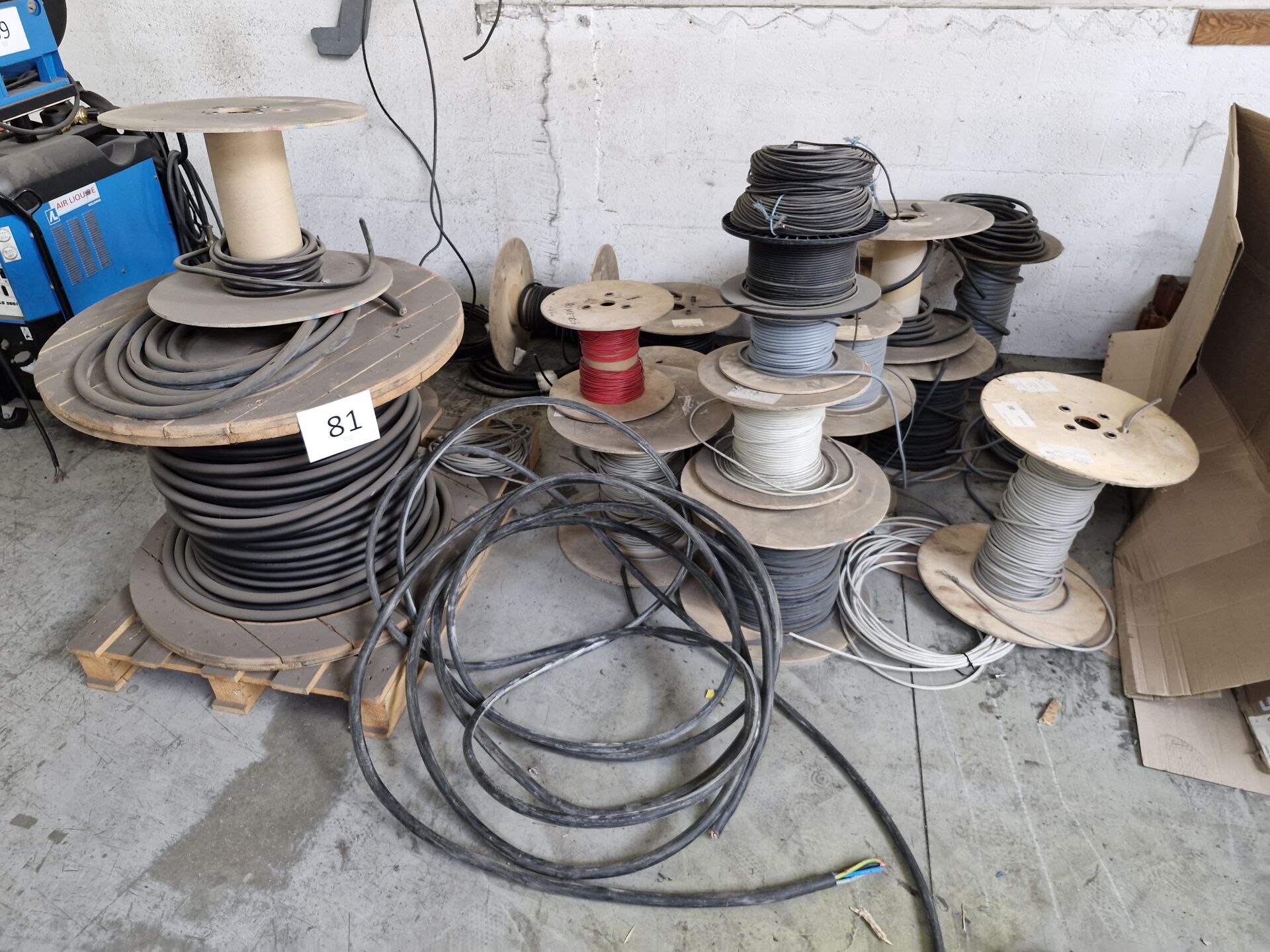 Environ 15 tourets de cable entamés de différentes sections dont PESCO, MN LEMMEAU, 3X2XAWG24...