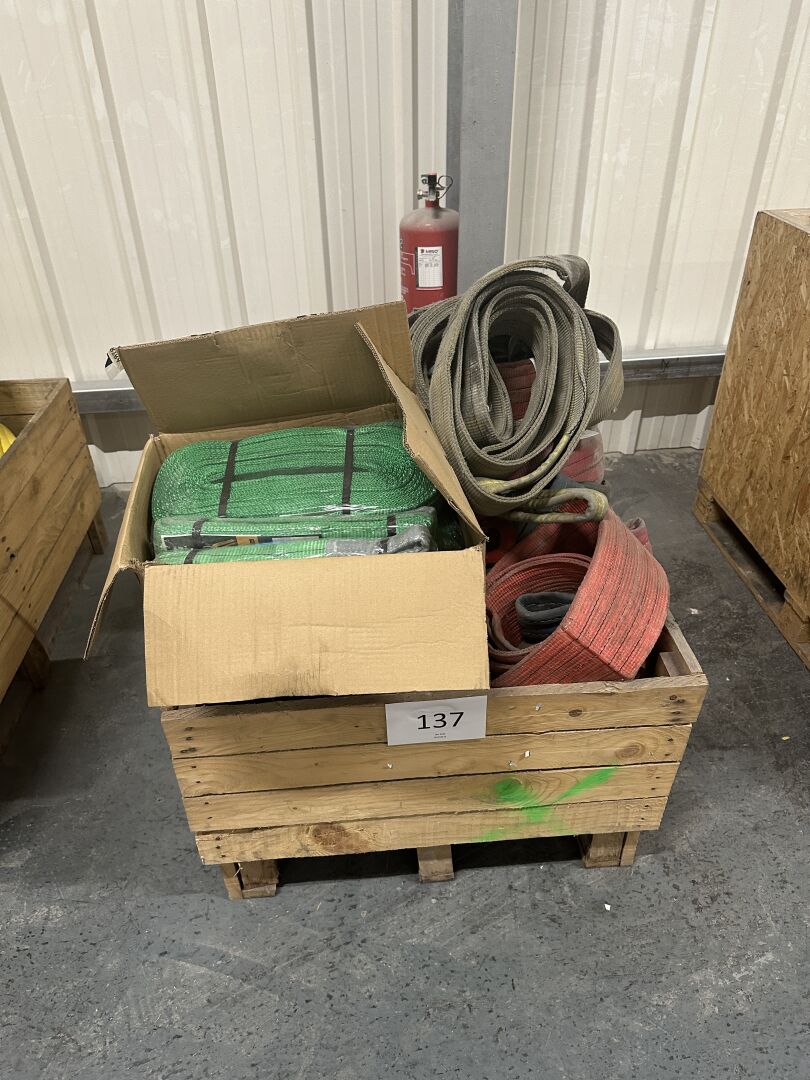 1 lot d’élingues tissu, dont 2 et 3 T, manilles, chaines, crochets