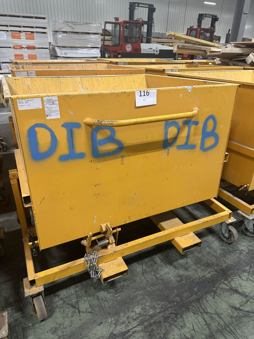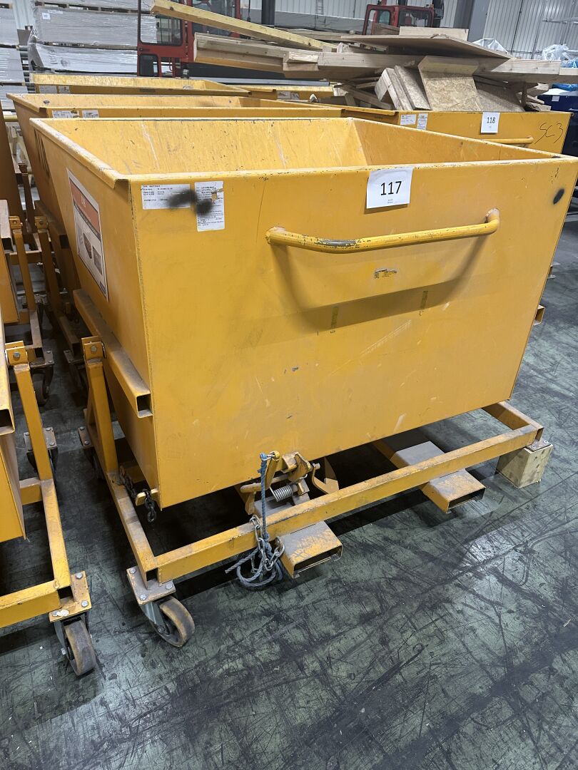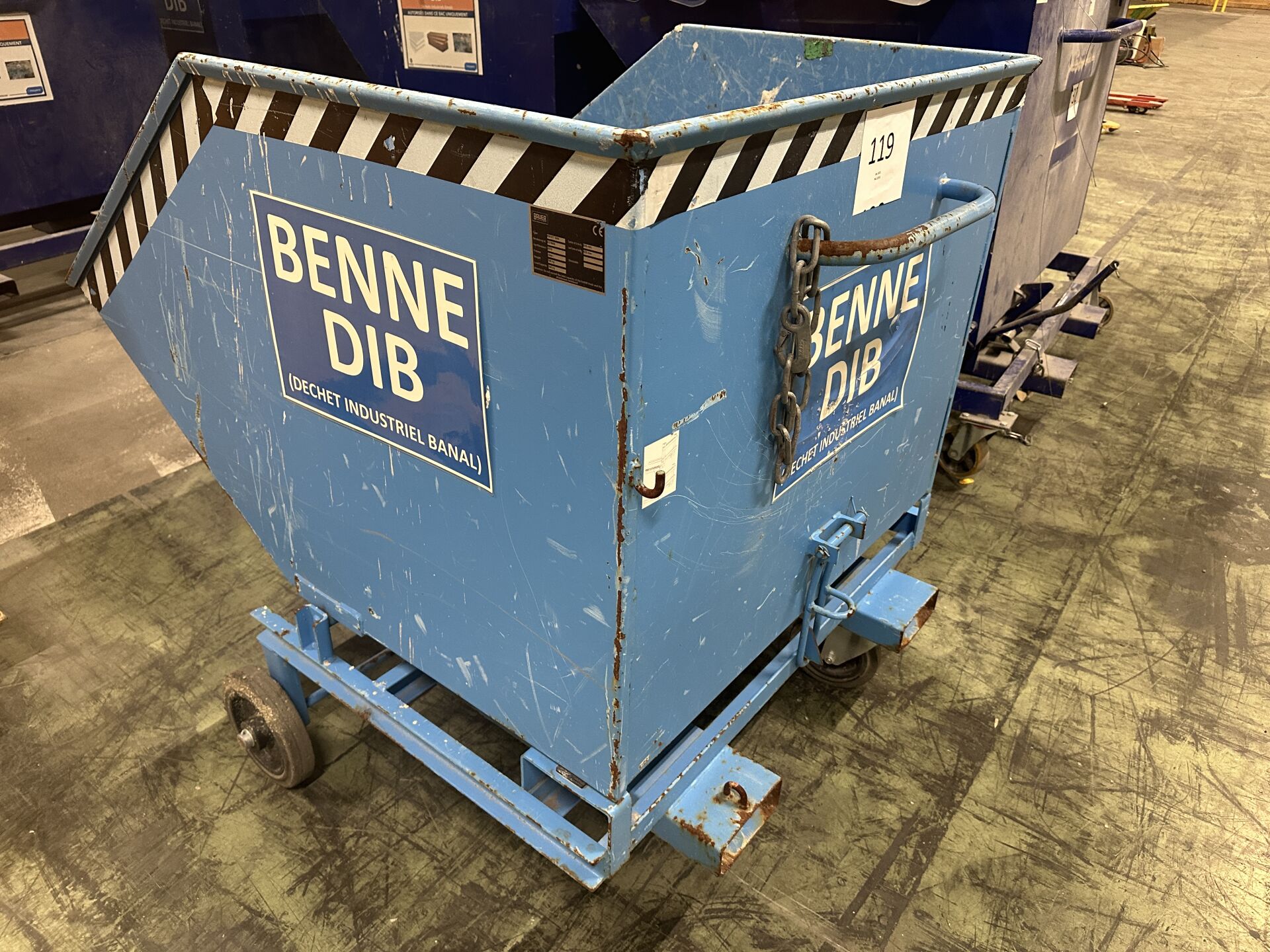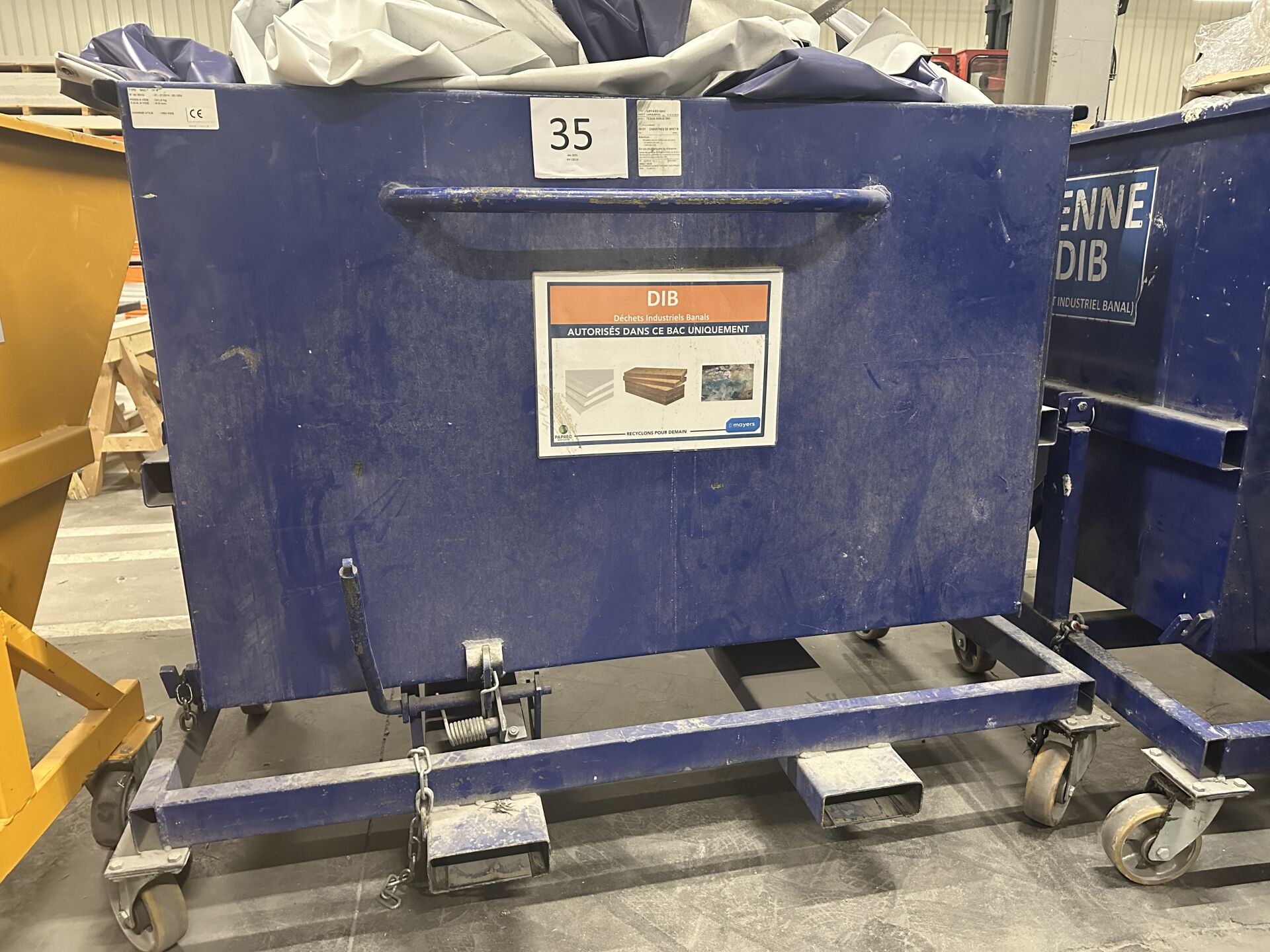 1 benne auto basculante 1320 l en métal laqué bleu type BAD P1320 R, PAV 241 kg, CU 1 T