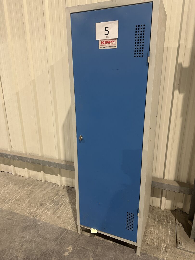 1 armoire vestiaire en métal laqué bleu et gris, ouvrant à 1 vantail avec contenu de lames de...
