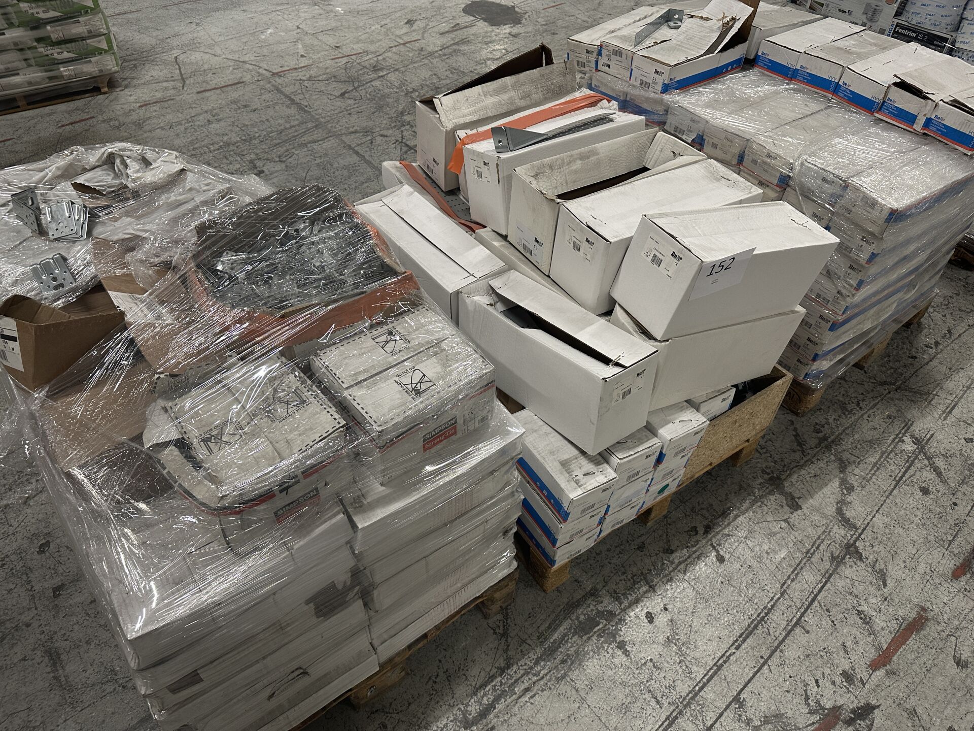 Sur 15 palettes, lot d’accessoires pour la construction dont sabots galva, platines,...