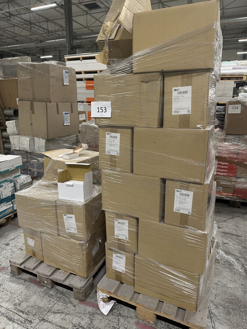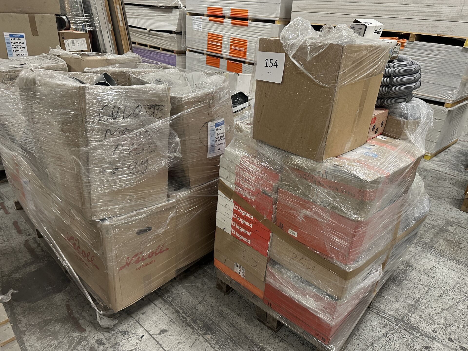 Sur 4 palettes, lot d’accessoires de plomberie et d’électricité dont gaines,...