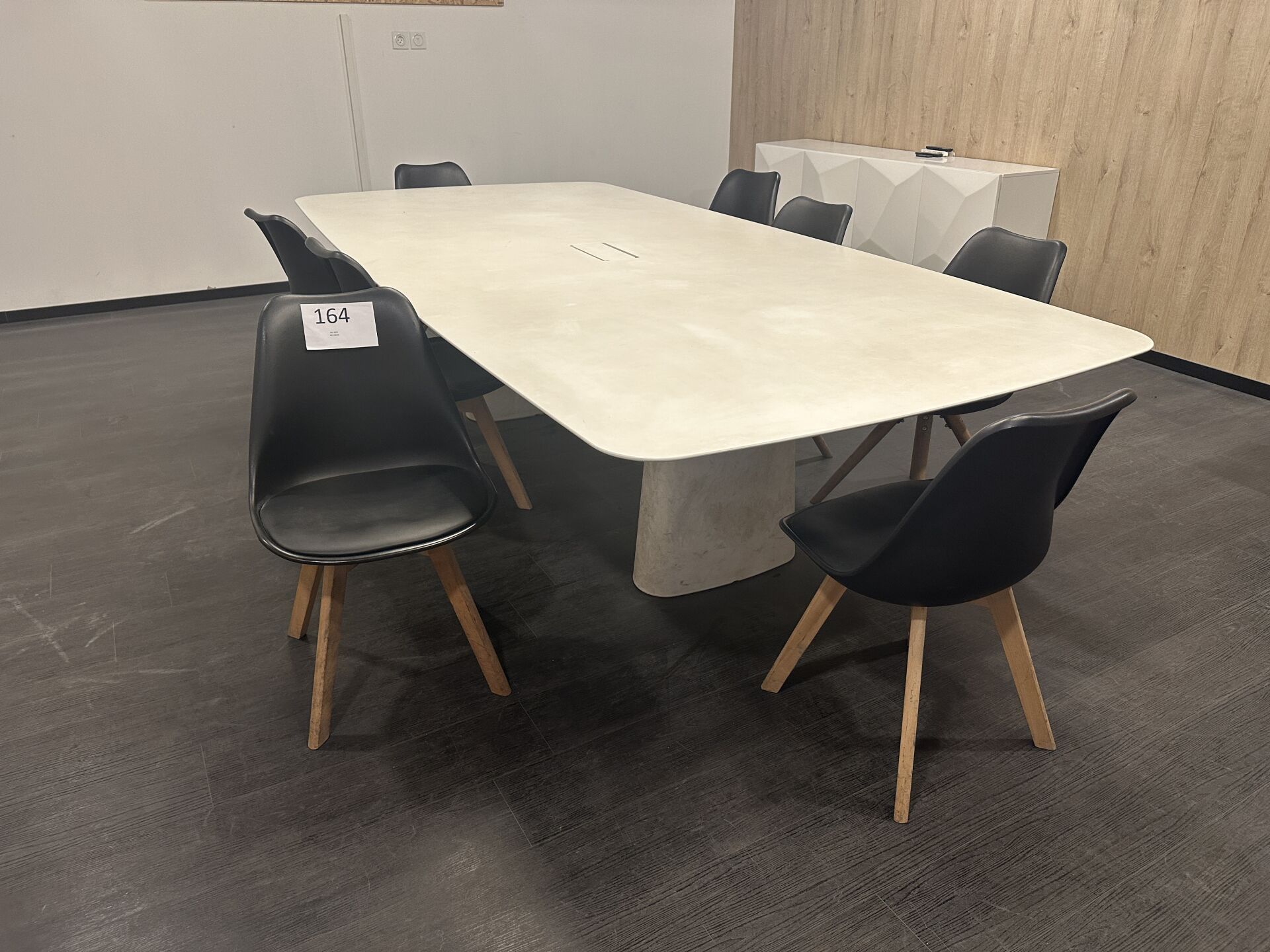 1 table de réunion en bois mélaminé blanc, piètement en métal laqué noir 280 x 140 cm