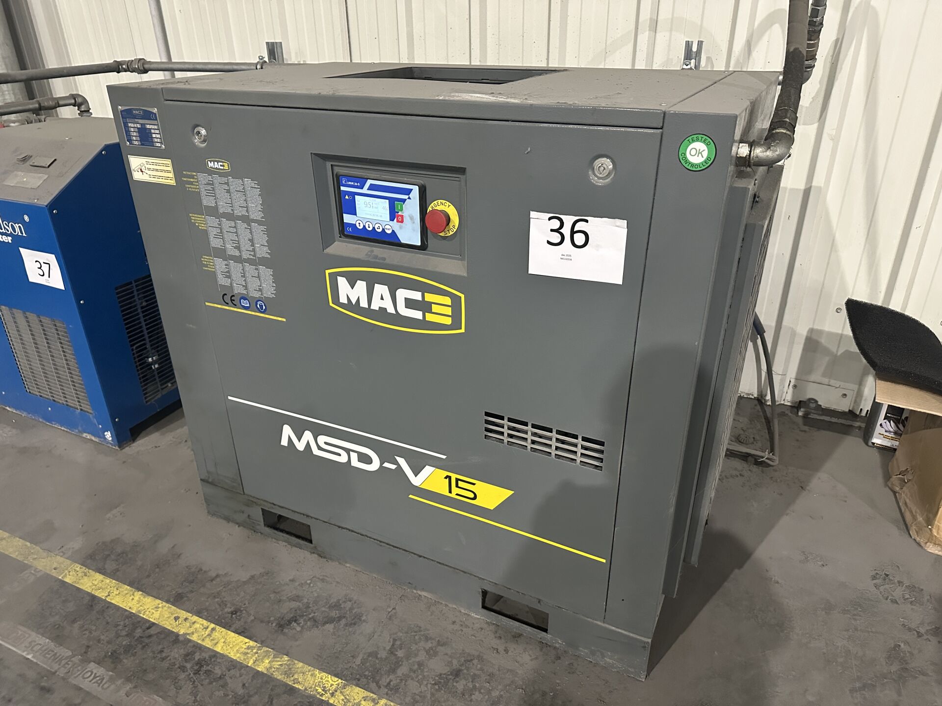 1 compresseur MAC 3, modèle MSD – V 15, de mars 2021 Compteur : 8722 h de marche, NS :...