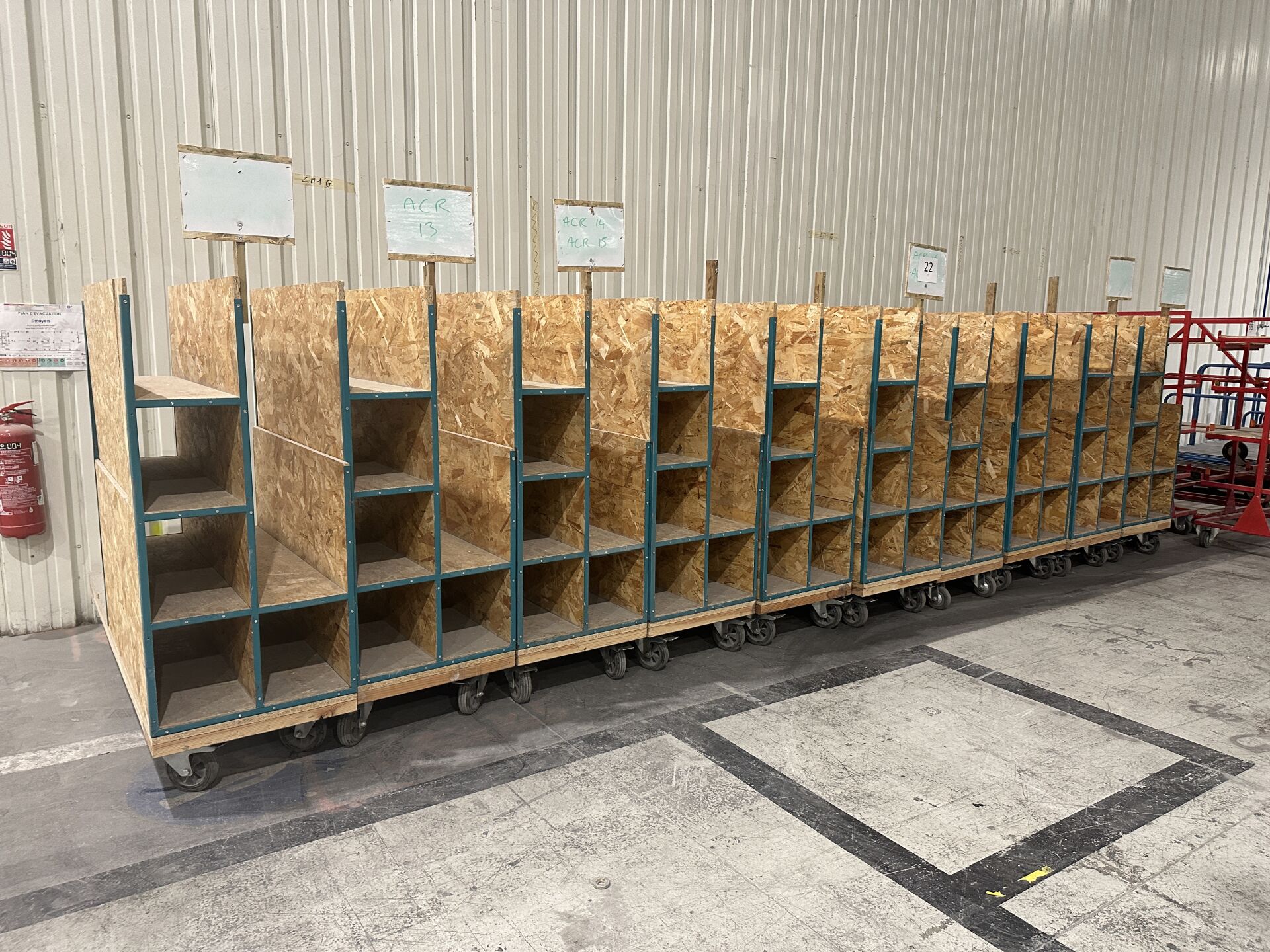 2 racks de stockage pour panneaux , inclinaison 83°, à rouleaux, 3 compartiments , longueur...