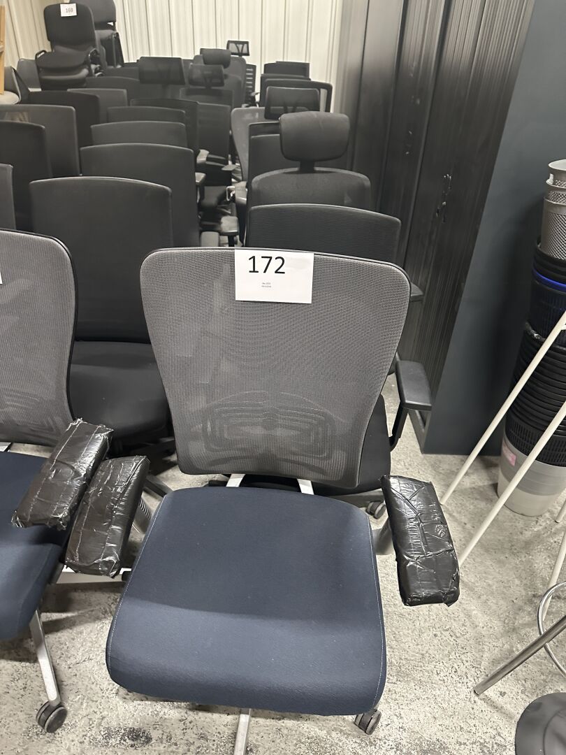 13 fauteuils ou chaises tournantes et roulantes assise tissu noir ou gris, dos filet