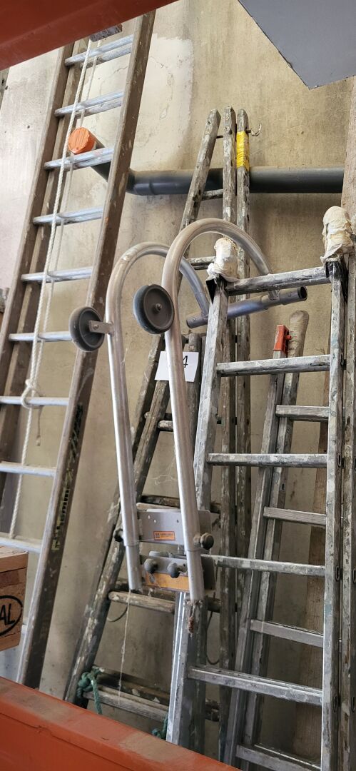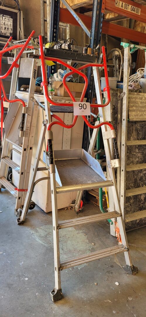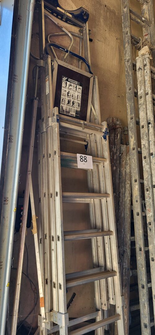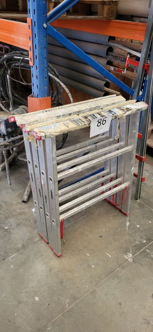 1 passerelle MACC télescopique 2 x 150 cm (pied accidenté) , 1 escabeau supposé MACC métal...