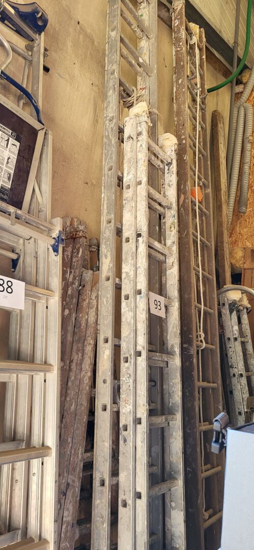 1 grande échelle à coulisse bois et alu 2 pans de 3.7 m