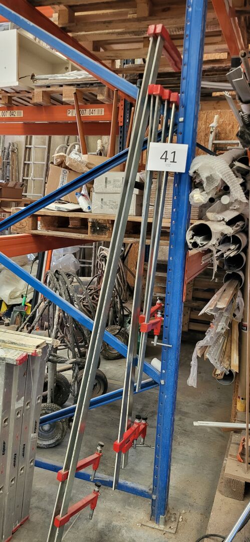 3 modules de racks métal bleu et jaune comprenant 4 échelles 110 x 400 cm et 20 lisses de 270...