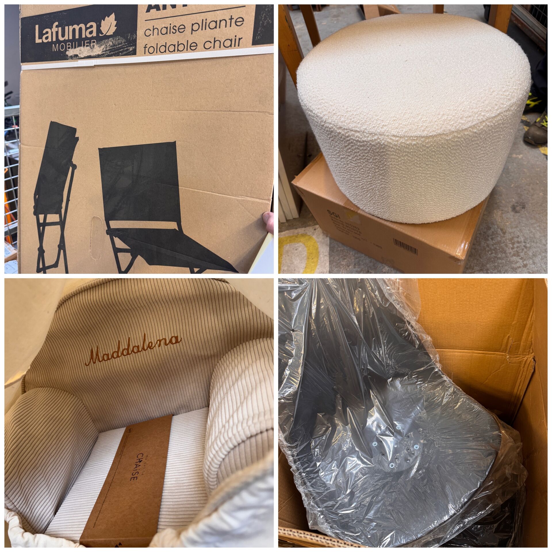 FORT ENSEMBLE DE PETITS MOBILIERS ET DECORATIONS (environ 1m3) DONT POUFS FATBOY, KAILA MIROIR...