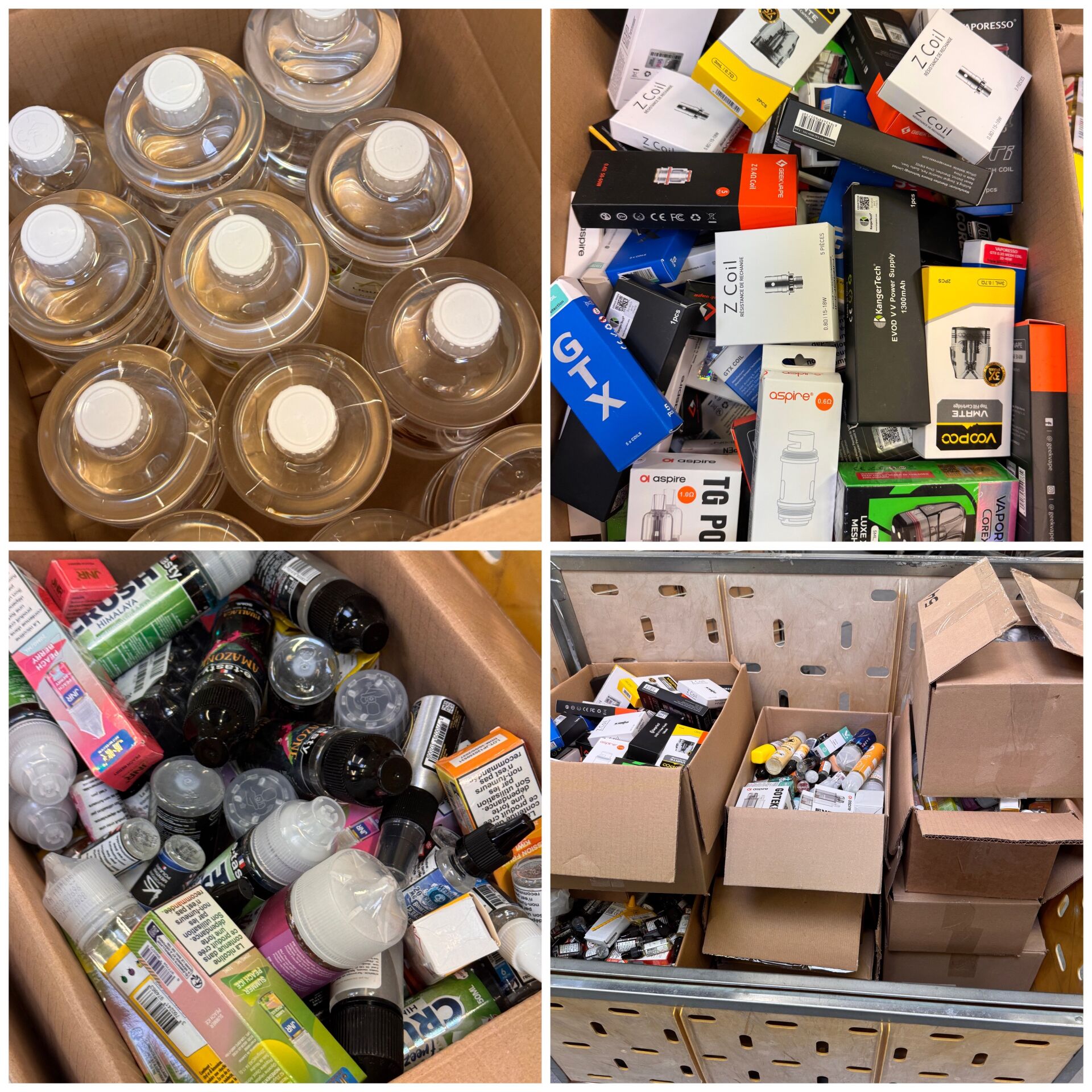 ENVIRON 60KG DE LIQUIDES ET ACCESSOIRES POUR CIGARETTES ELECTRONIQUES DONT GEEKVAPE, INNOKIN,...