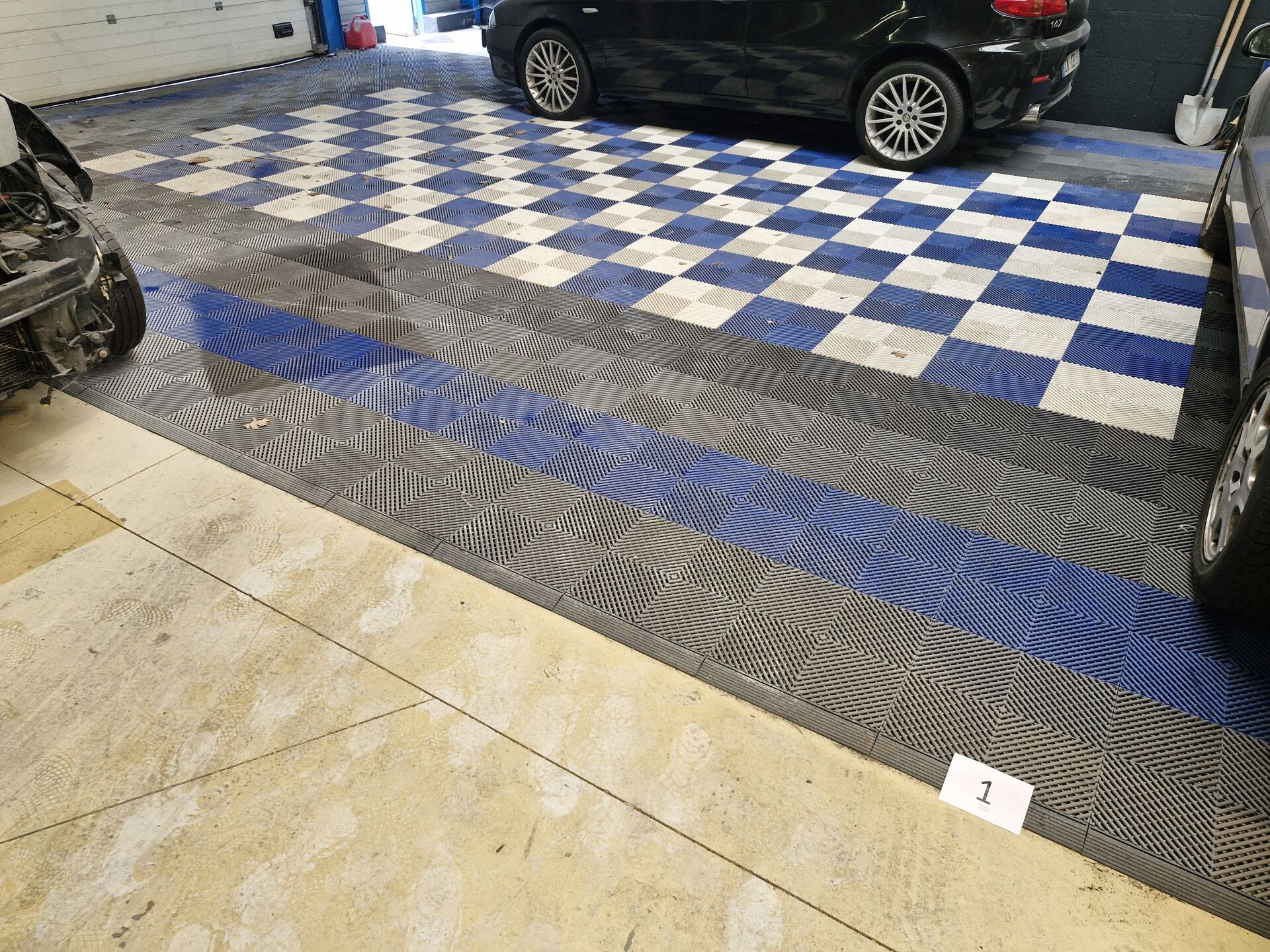 1 lot de dalles de sol pour garage en polypropylène blanc, noir, gris et bleu, environ 605x810cm...