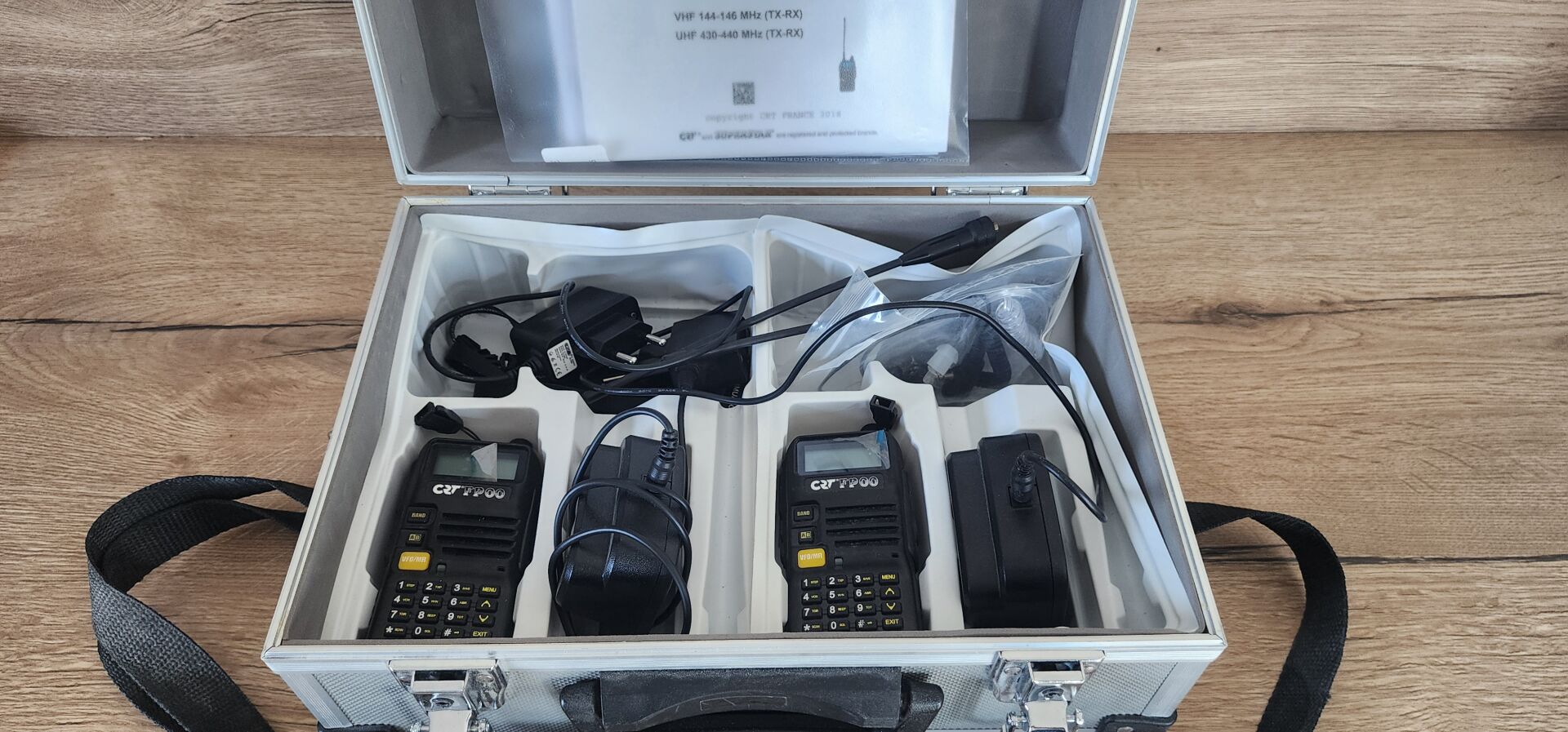 2 talkie-walkies UHF-VHF CRT FRANCE FP00 dans son coffret alu