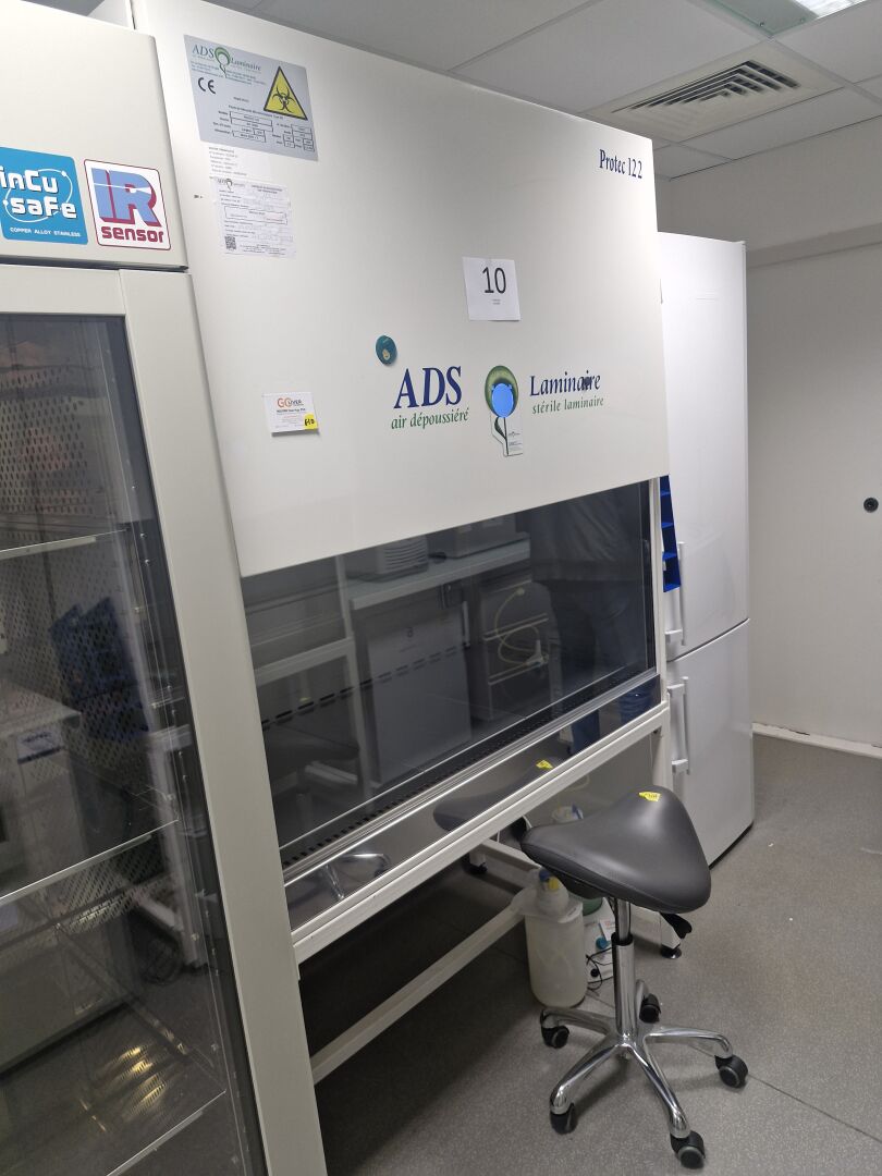 1 lampe UV ADS LAMINAIRE PROTEC 122 PSM 0.9 (S/N 19841) + piètement 126 x 83 x 215 cm