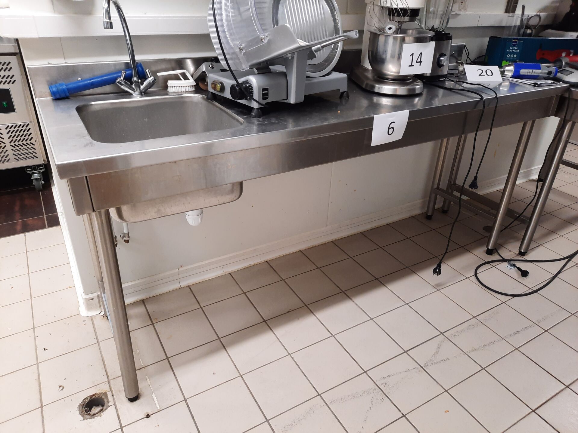 Plonge en inox à 1 bac à dosseret, égouttoir à droite (200 x 60 cm)
