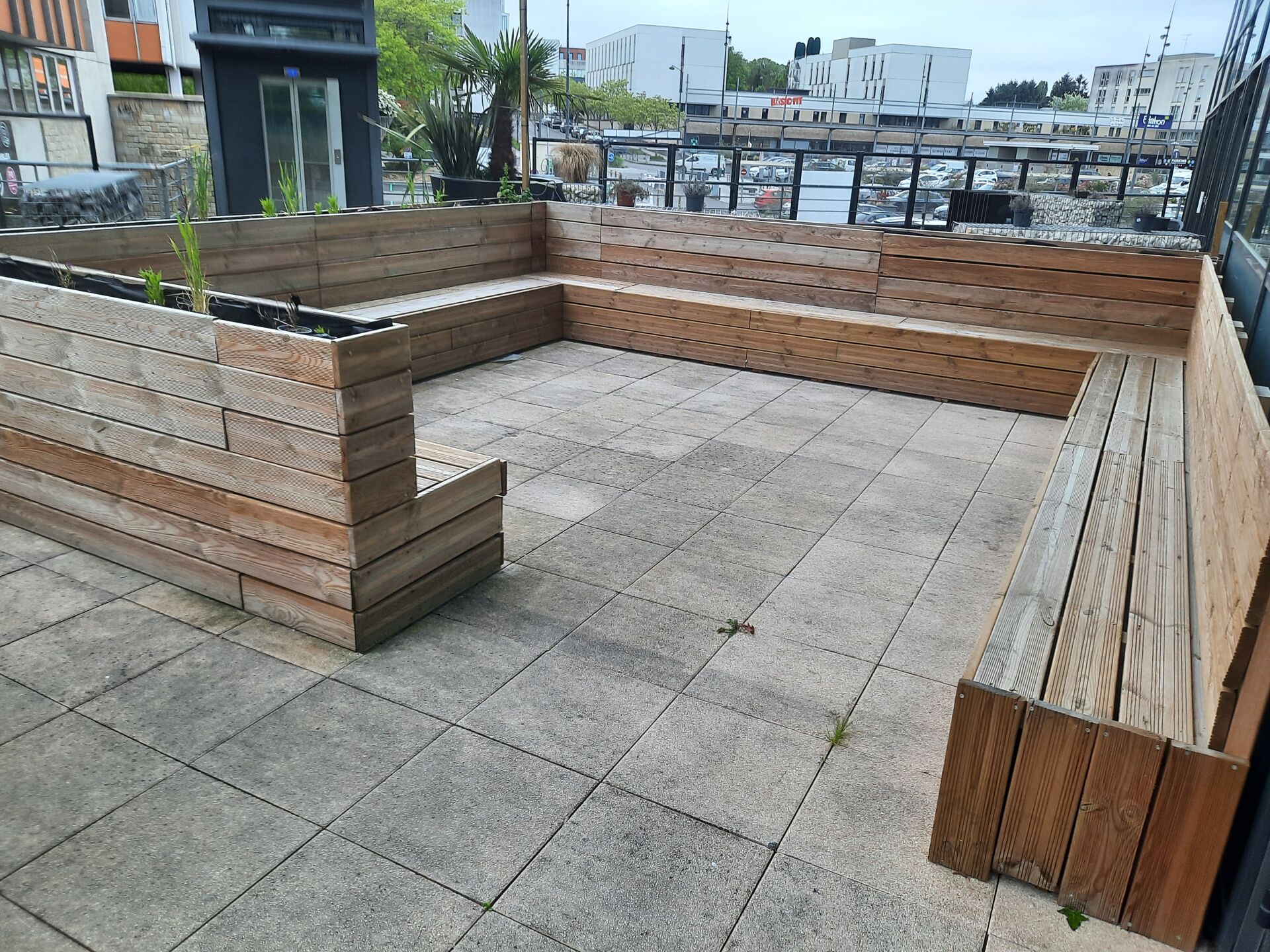 11 bancs en lames de terrasse traitées classe 4 (fabrication interne)